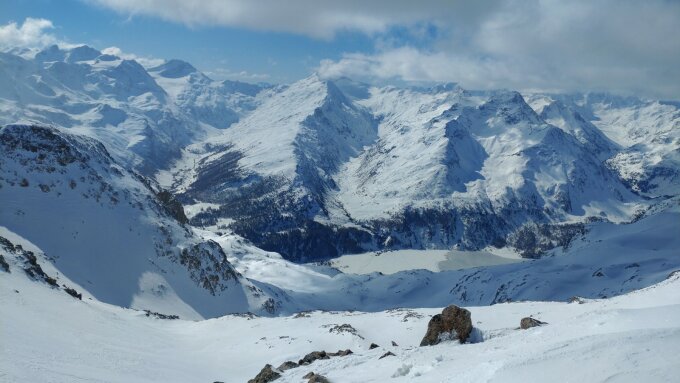 Kann weiterhin noch gut gemacht werden. D.h. diese Tour kann bestimmt noch einen Monat gemacht werden. Das wunderschöne Hochtal unter dem Piz Lagrev ist ausgezeichnet eingeschneit.