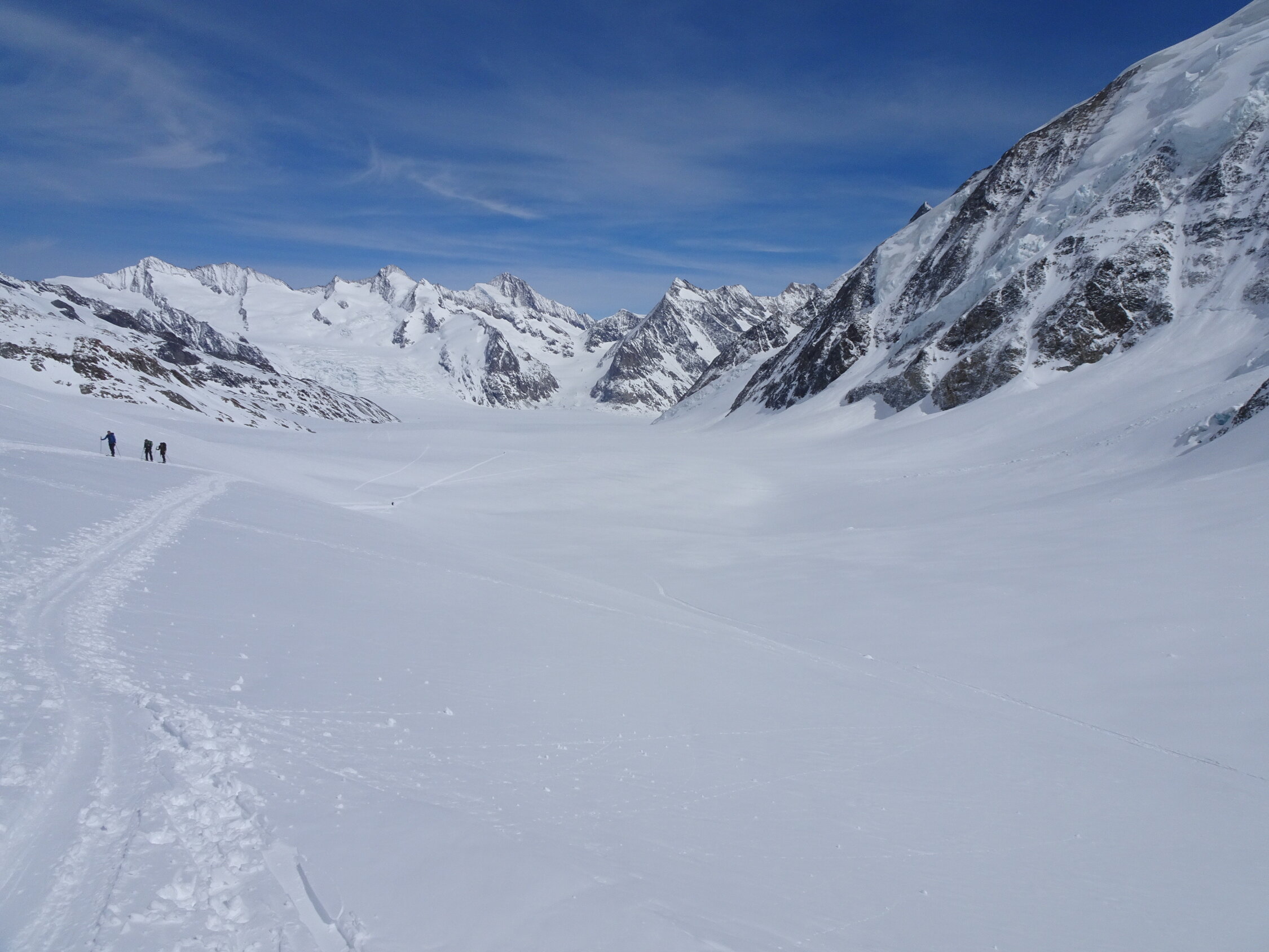 ausser den zu erwartenden Tragestrecken bei der Abfahrt Fafleralp - Blatten noch lange machbar, das Aletschgebiet ist für diesen Winter sehr gut eingeschneit