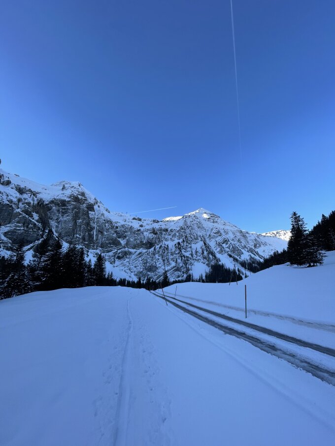 Stärkung in der Hütte, danach Aufstieg aufs Iffighore auf guter Spur, Südhang, weich. Abfahrt Iffighore bis auf ca 1900m auch noch gut, gehorsamer gesetzter Pulver. Tiefer wirds nass resp schneearm, Fahrt bis PP knapp aber komplett möglich.