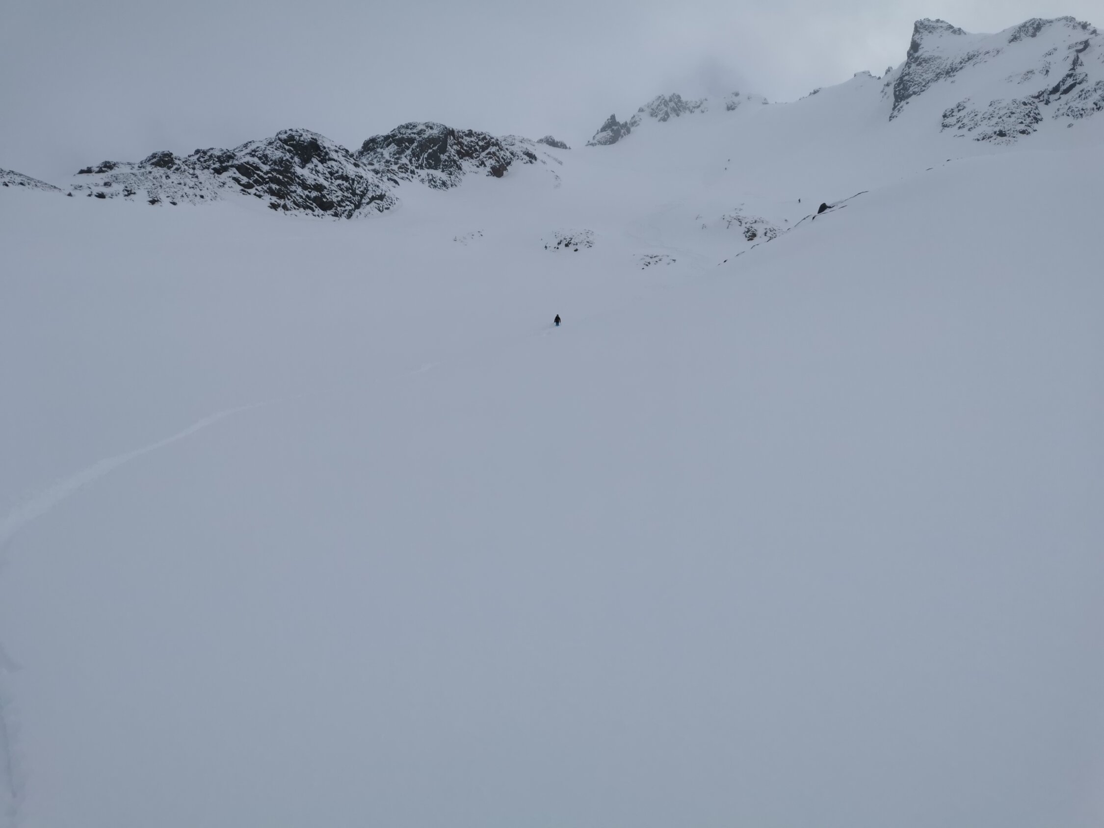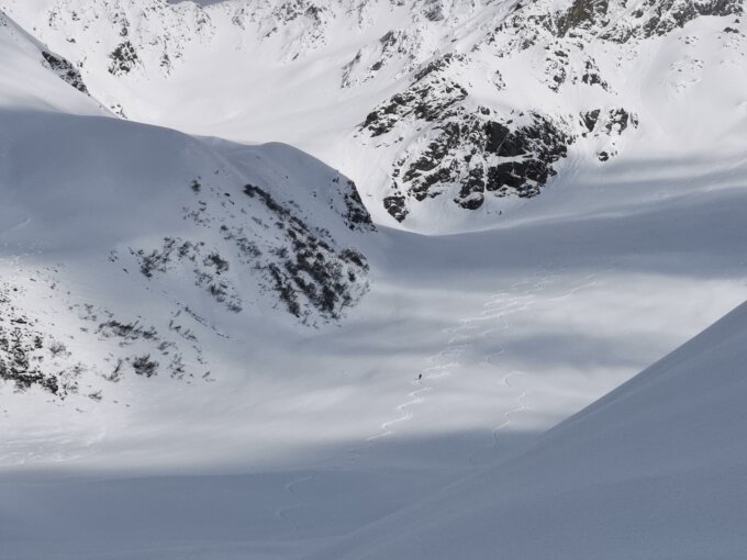 Pulverschnee ist natürlich Geschichte, abgesehen vom direkten gipfelhang. größtes Manko sind die tragestrecken im nenzigasttal... brutal wenig Schnee dieses Jahr
