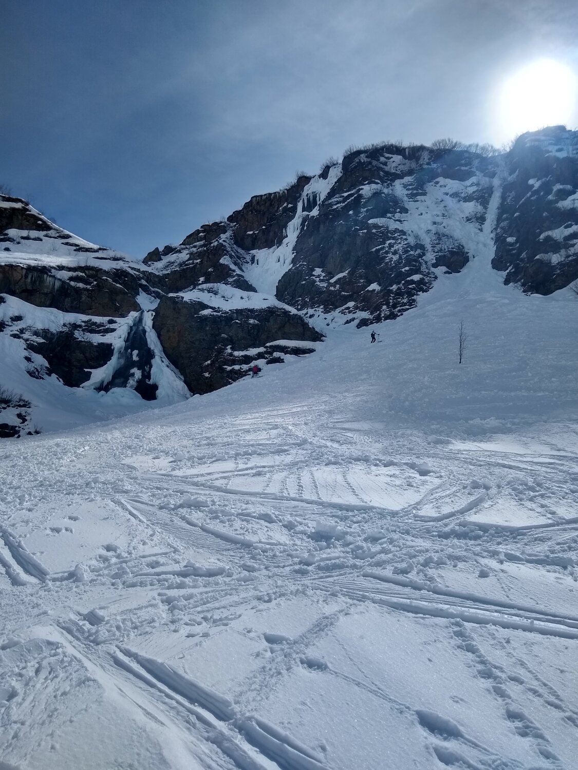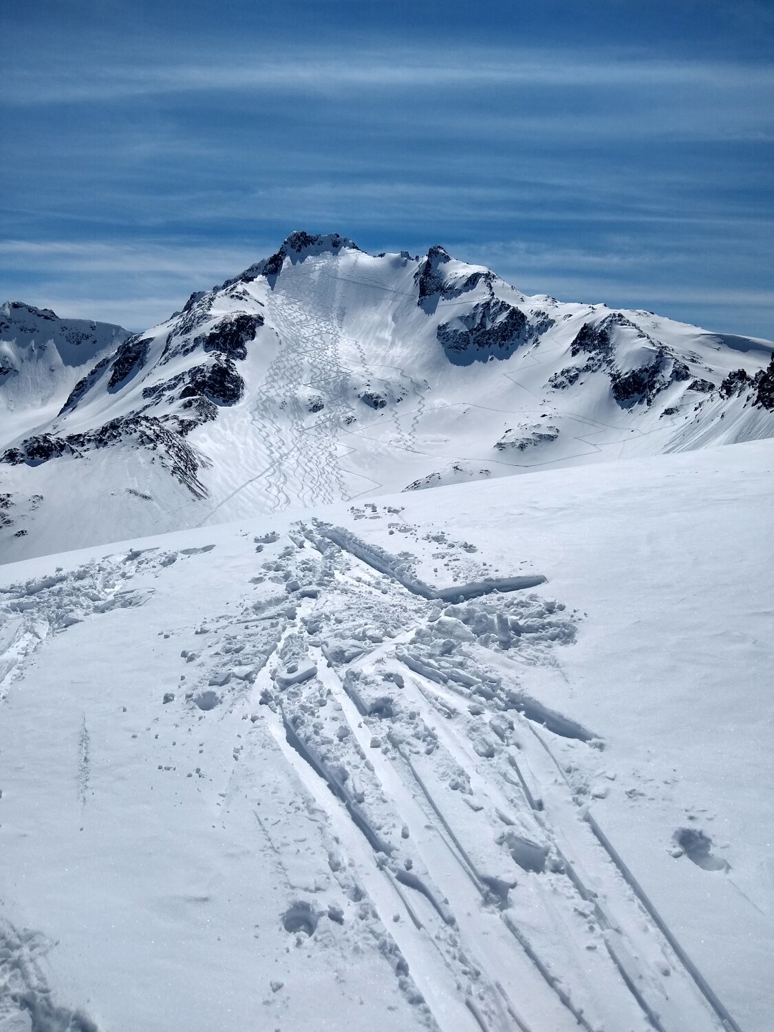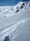 Nordseitig lockerer Pulver, unten in der Krachel "Bremsschnee"