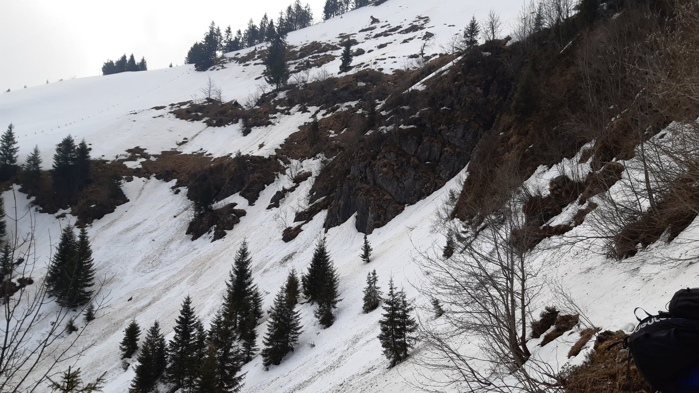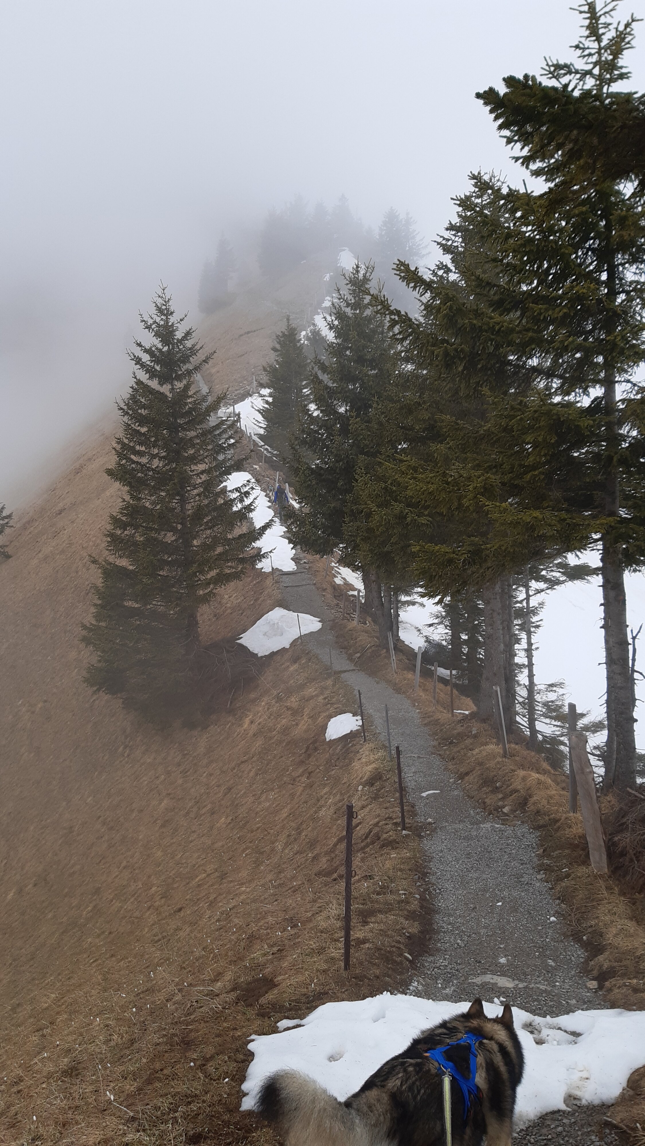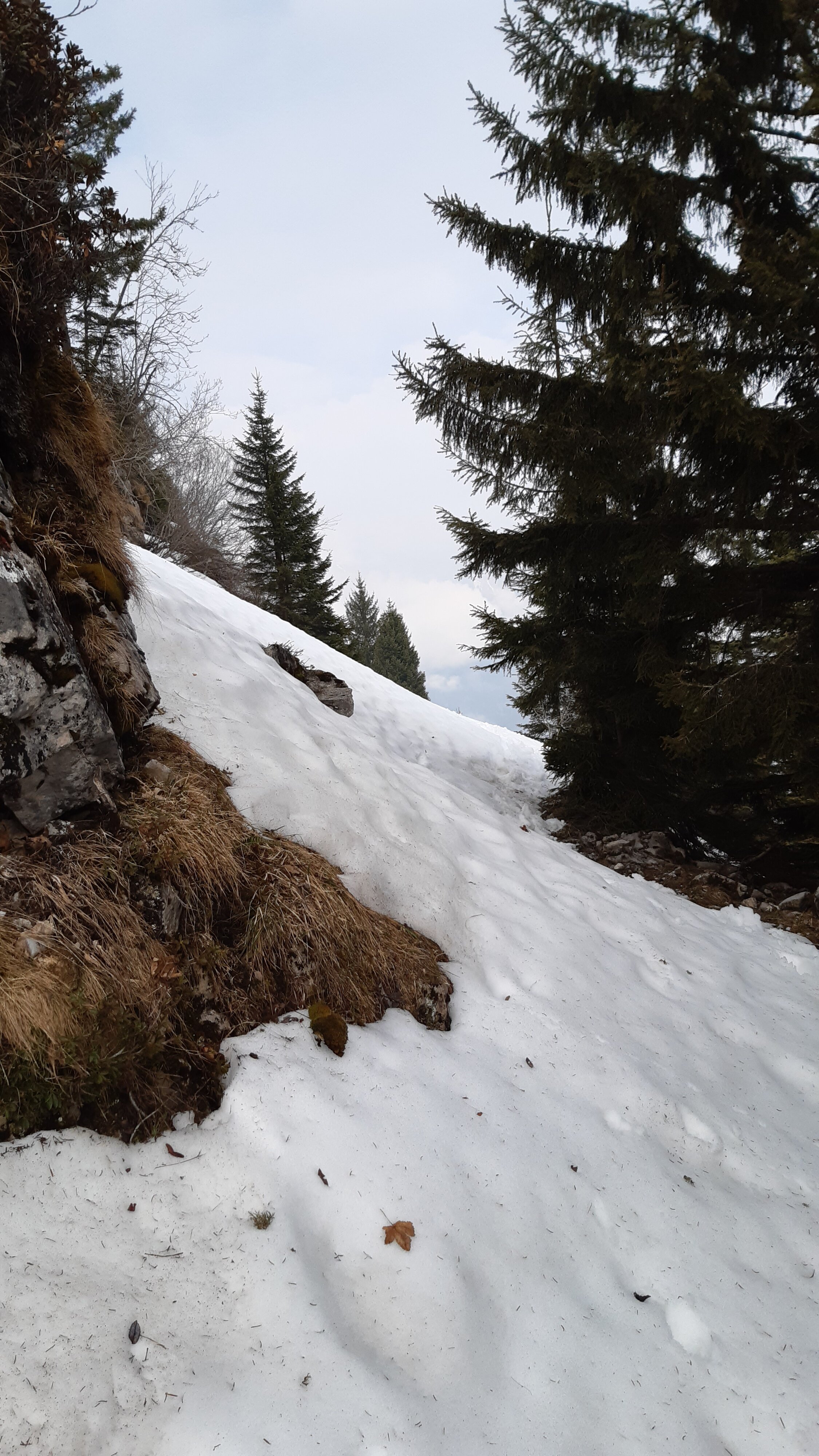Schneefrei bis bei der Querung Richtung Rinderalp. Heute Trittschnee mit stellenweise Tiefgang. Machbar aber kein Genuss für trockenwanderer.