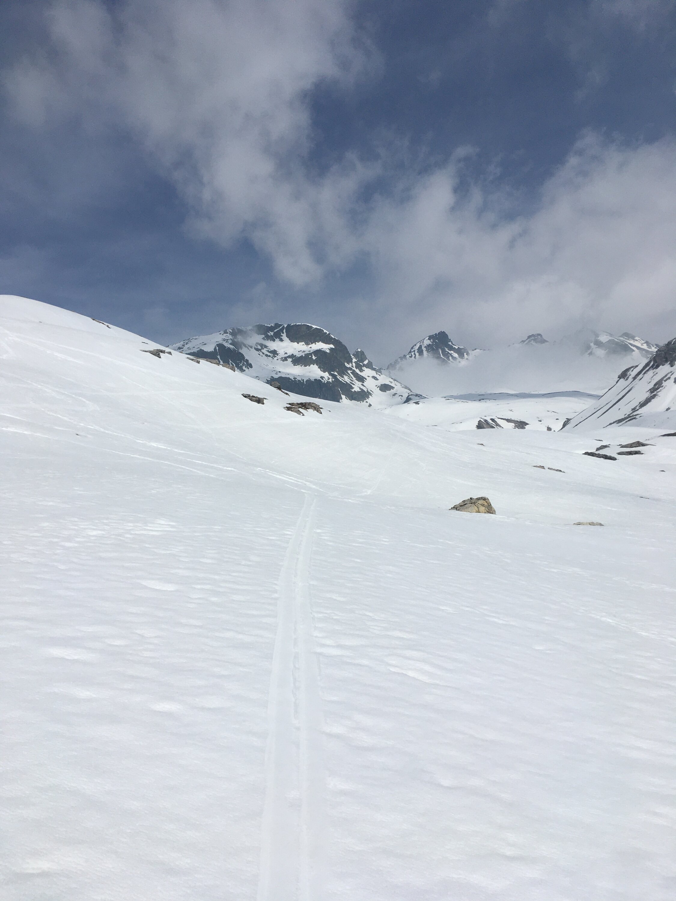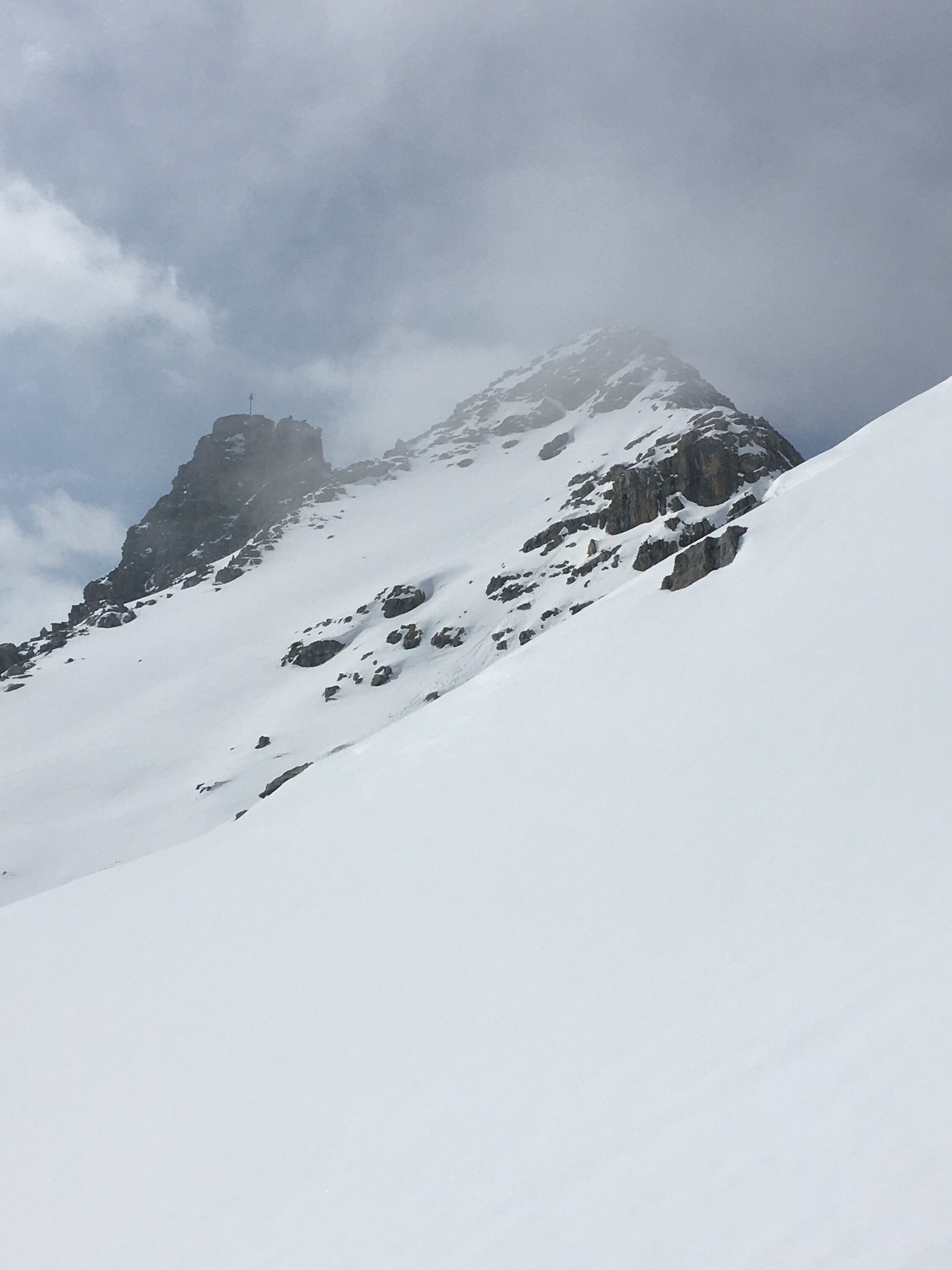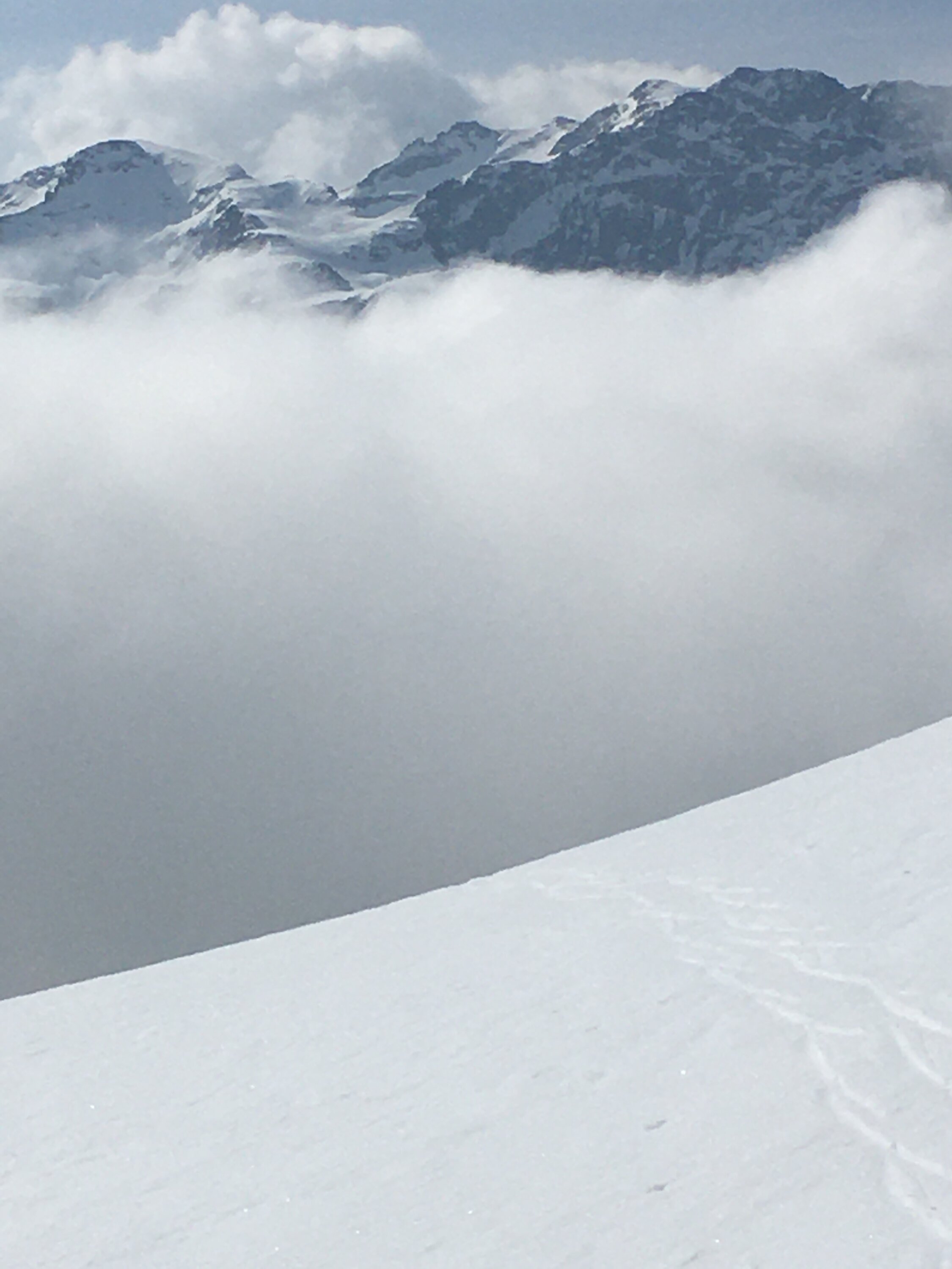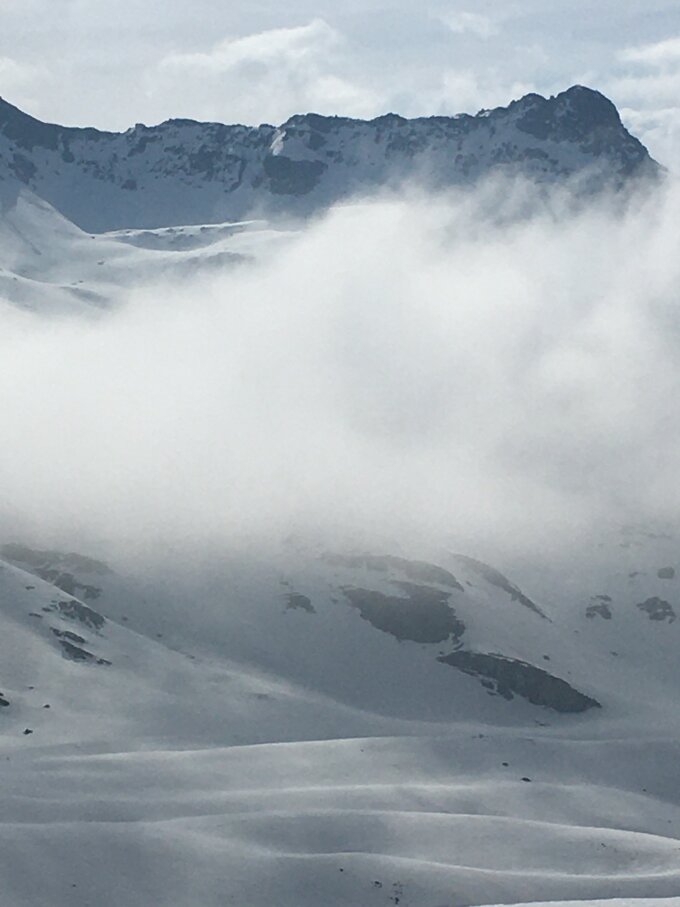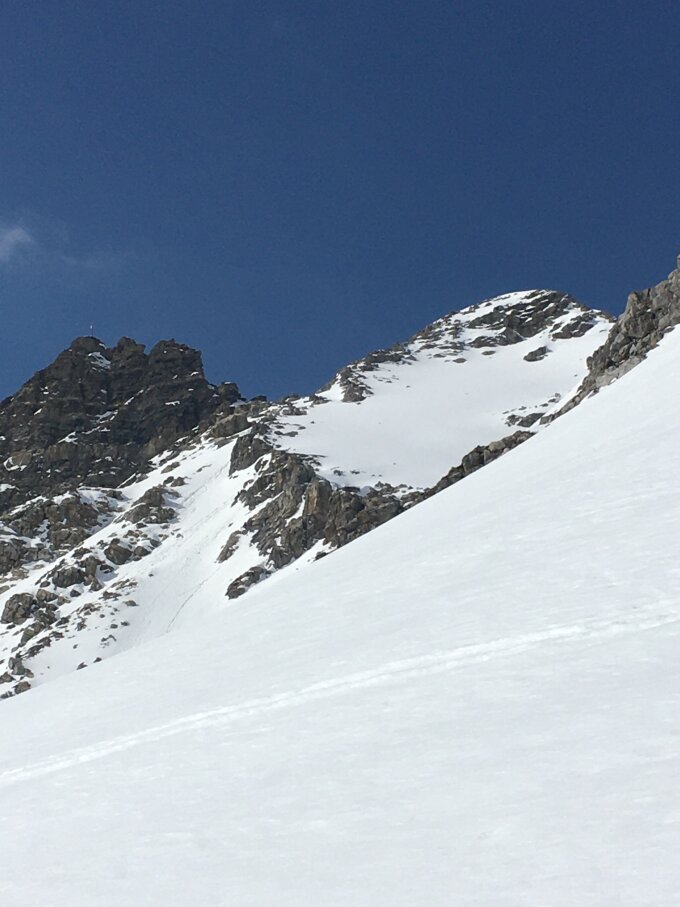 Start um 7.30 Parkplatz unterhalb Veduta, plus 3 Grad, windstill, leicht bewölkt und etwas neblig. Bis Höhe 2600 m Hartschnee, nachher konnte ich Spur legen auf feuchtem Pulverschnee mit guter Unterlage bis Nordgrat Höhe 2750. Bin heute nicht bis markanten Vorgipfel aufgestiegen, bin für das extrem warme Wetter zu spät gestartet. Abfahrt um 11.15 Uhr wie Aufstieg, oben perfekter Firn bis Höhe 2500, nachher etwas weicher Sulz, einige wenige Male bin ich etwas eingebrochen, aber mit etwas Vorsicht war die Abfahrt auch im Val d´Agnel nicht schlecht.