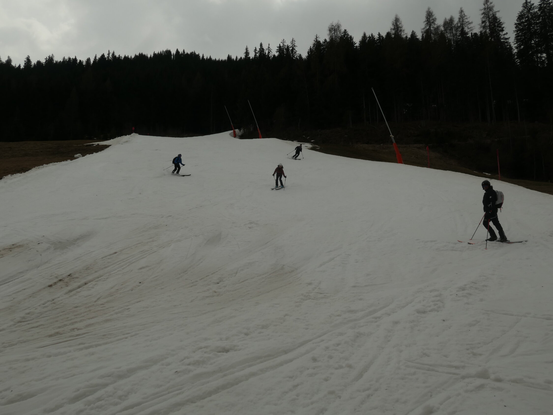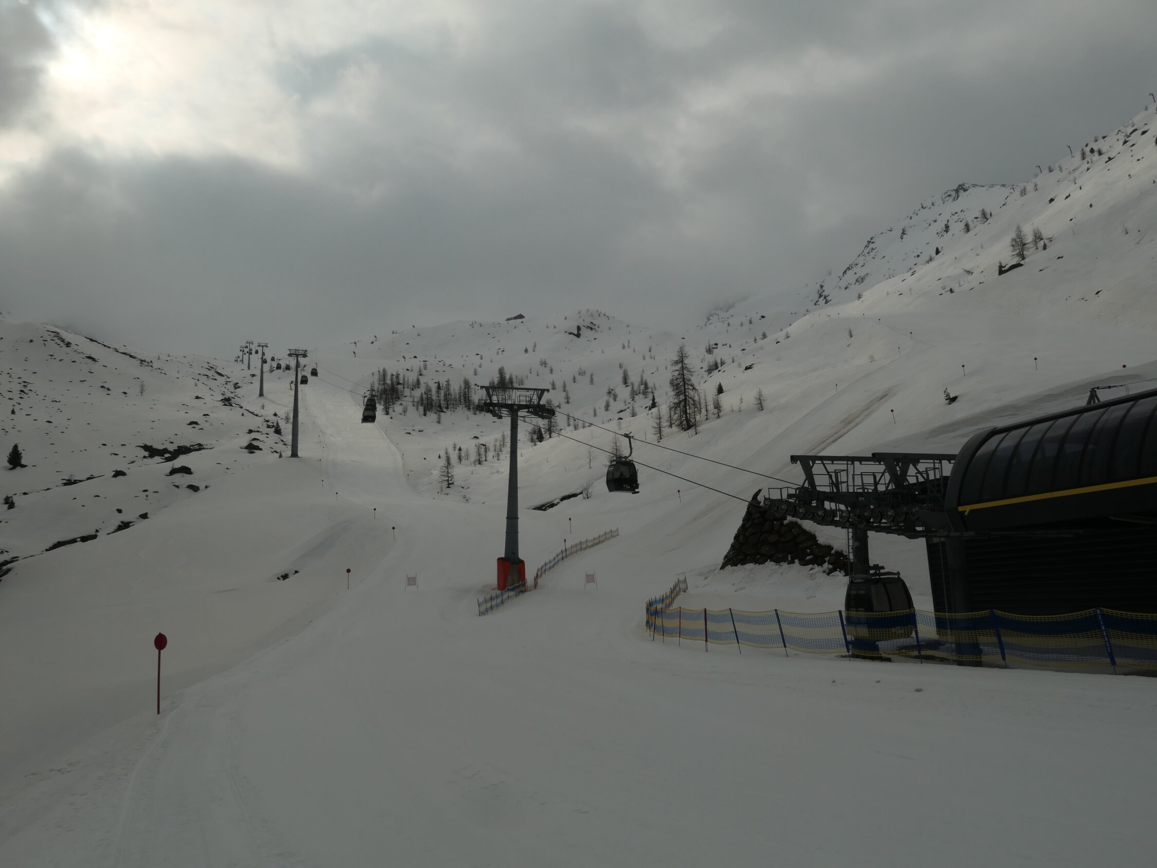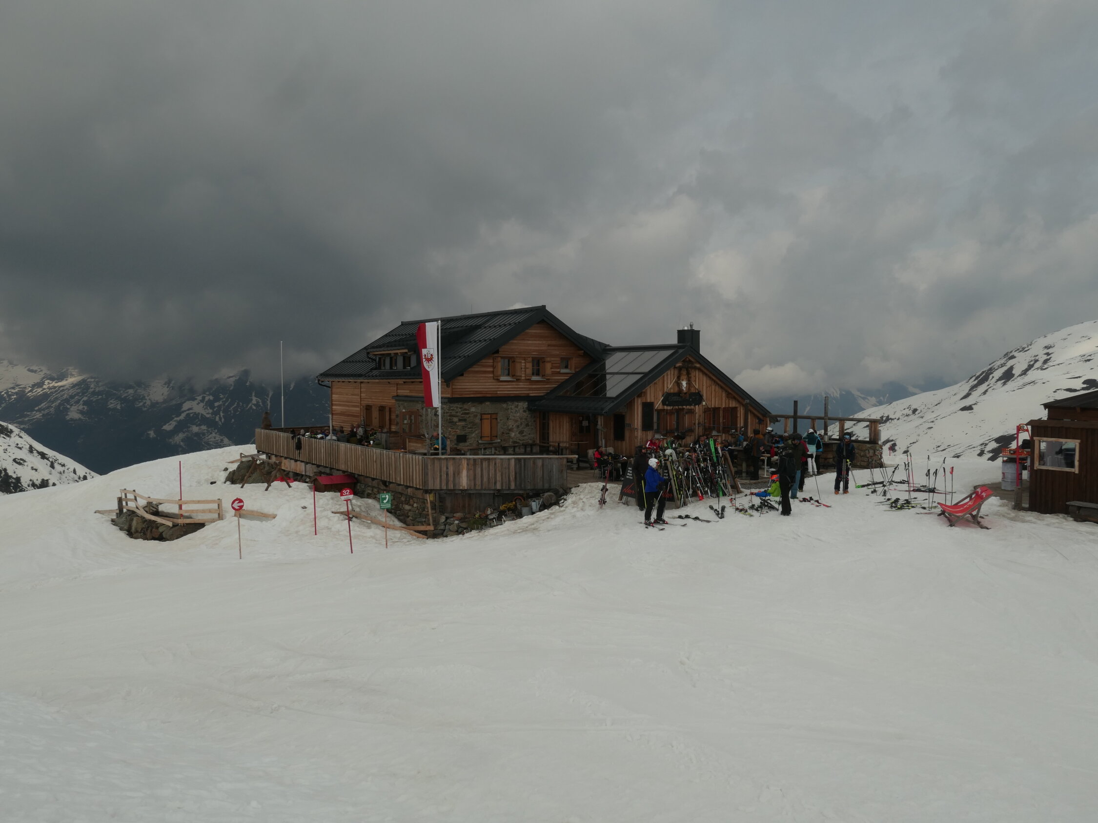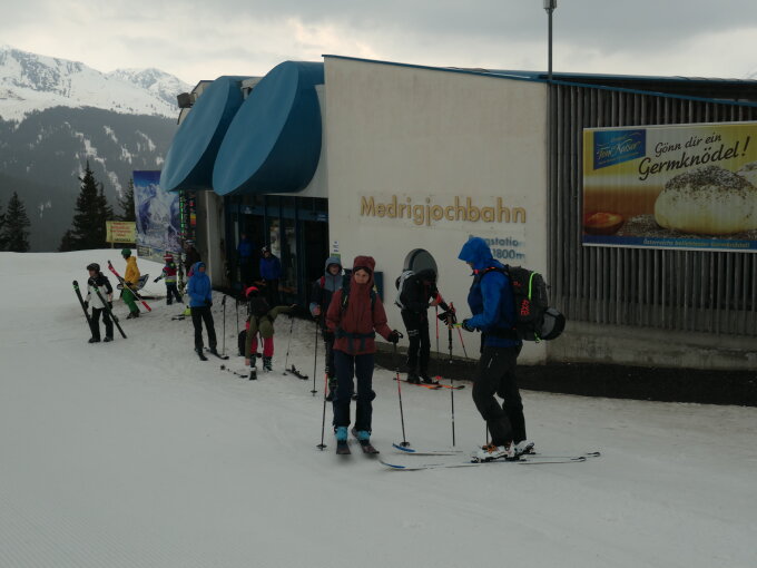 Auf Grund des schlechten Schneequalität(nass, tief..) Aufstieg abgebrochen und Rückkehr ins Schigebiet bei der Versingbahn Bergstation. Abfahrt über die Schipiste bis unter die Ascherhütte. Erneuter Aufstieg über Schipiste und Schirouten zur Bergstation der Rossmooslift Bergstation. Infolge einsetzendem leichten Regen über die Piste abgefahren ins Tal nach See.