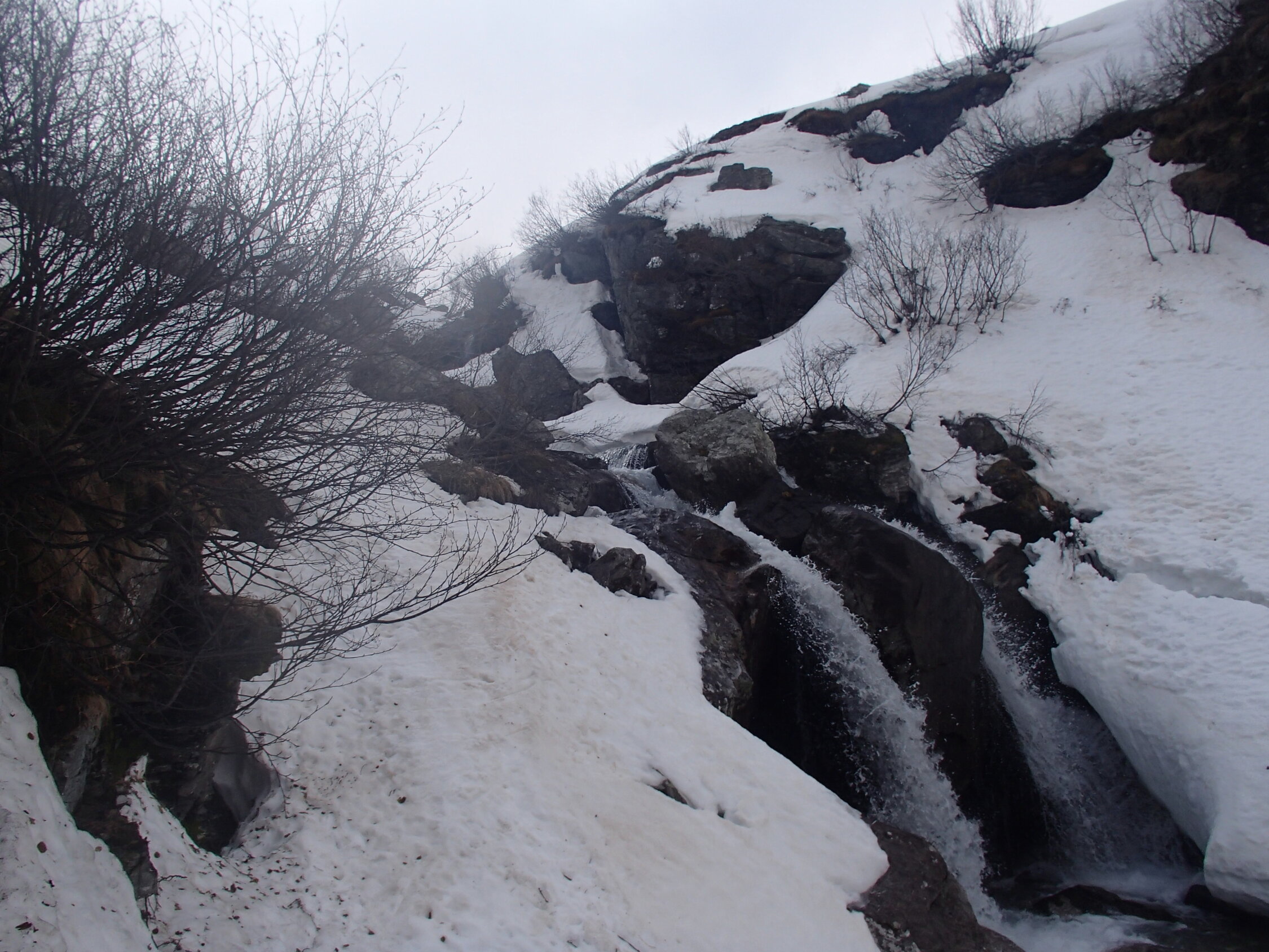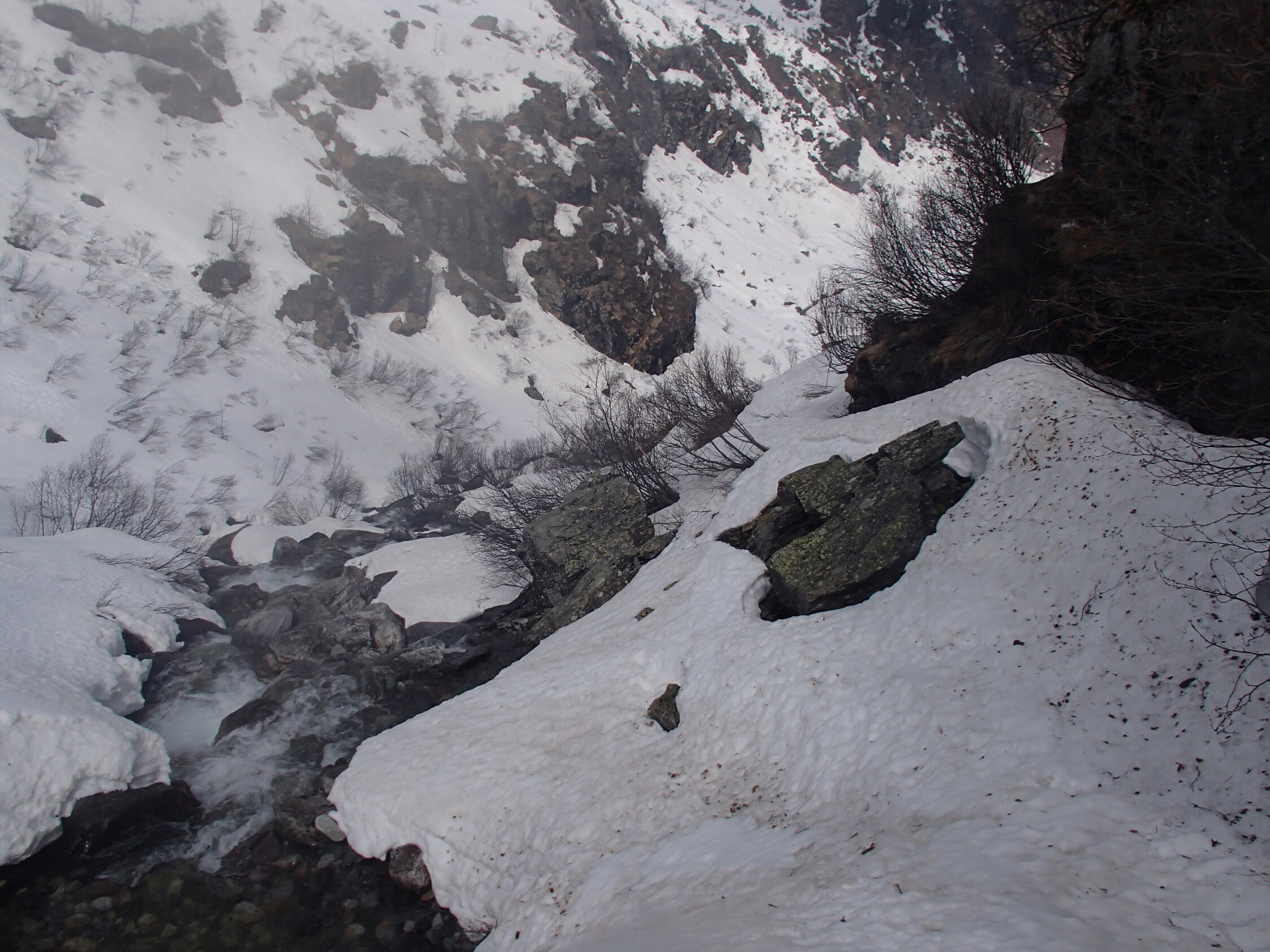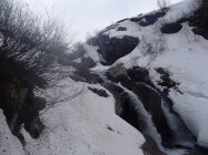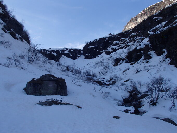 Im Niderenbachtobel nimmt der Bach schon viel Raum in Anspruch. Man kann im Tobel jedoch noch gut aufsteigen und abfahren. Andere Tourengänger haben den Sommerweg genutzt.