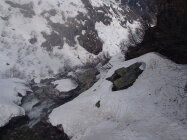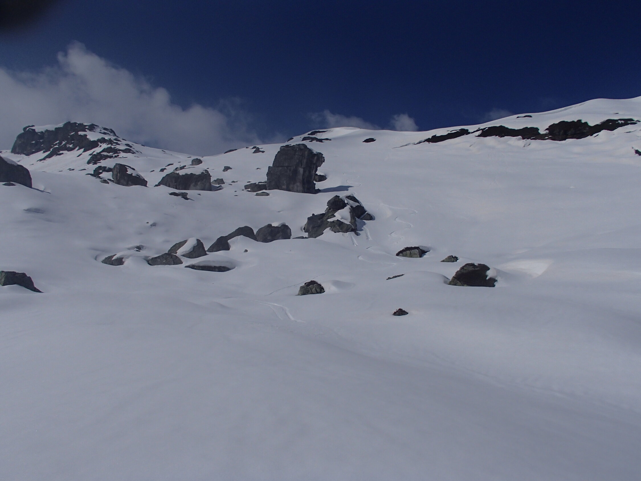 Ich bin vor 11 Uhr wieder abgefahren. Oben war der Schnee noch tragend unten dann an den sonnenexponierten Hängen schon nass. Also "der frühe Vogel fängt den Wurm".