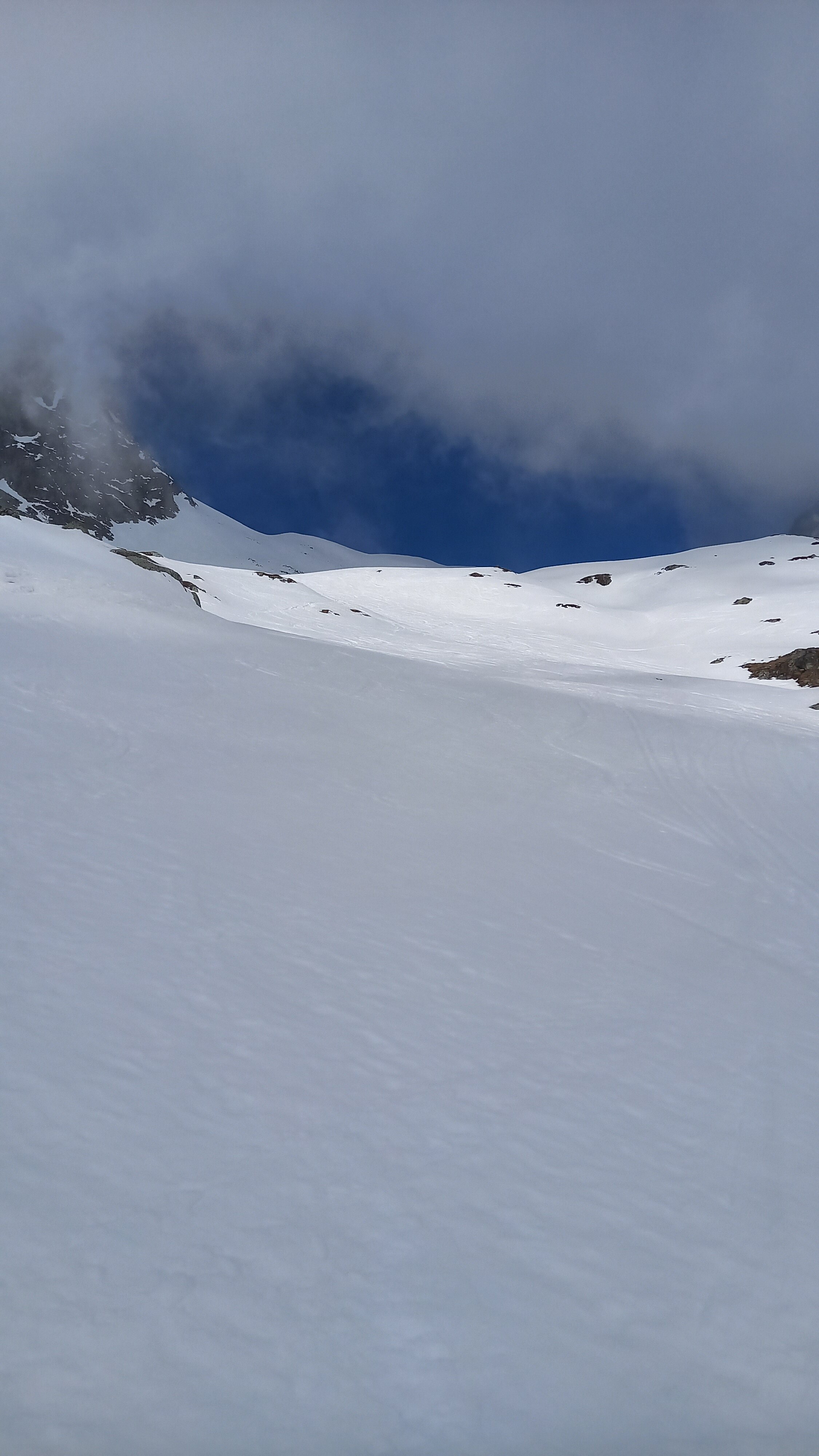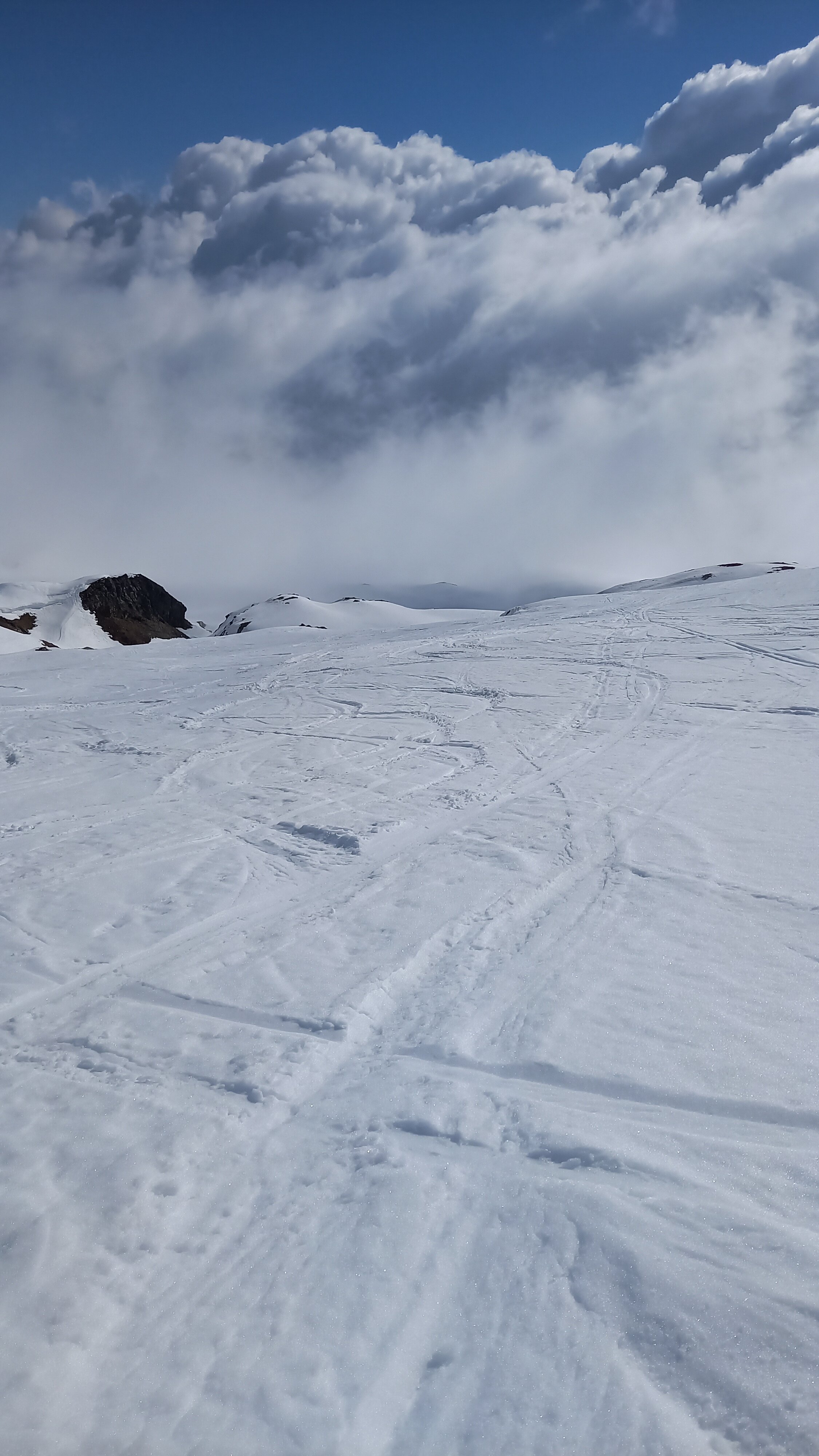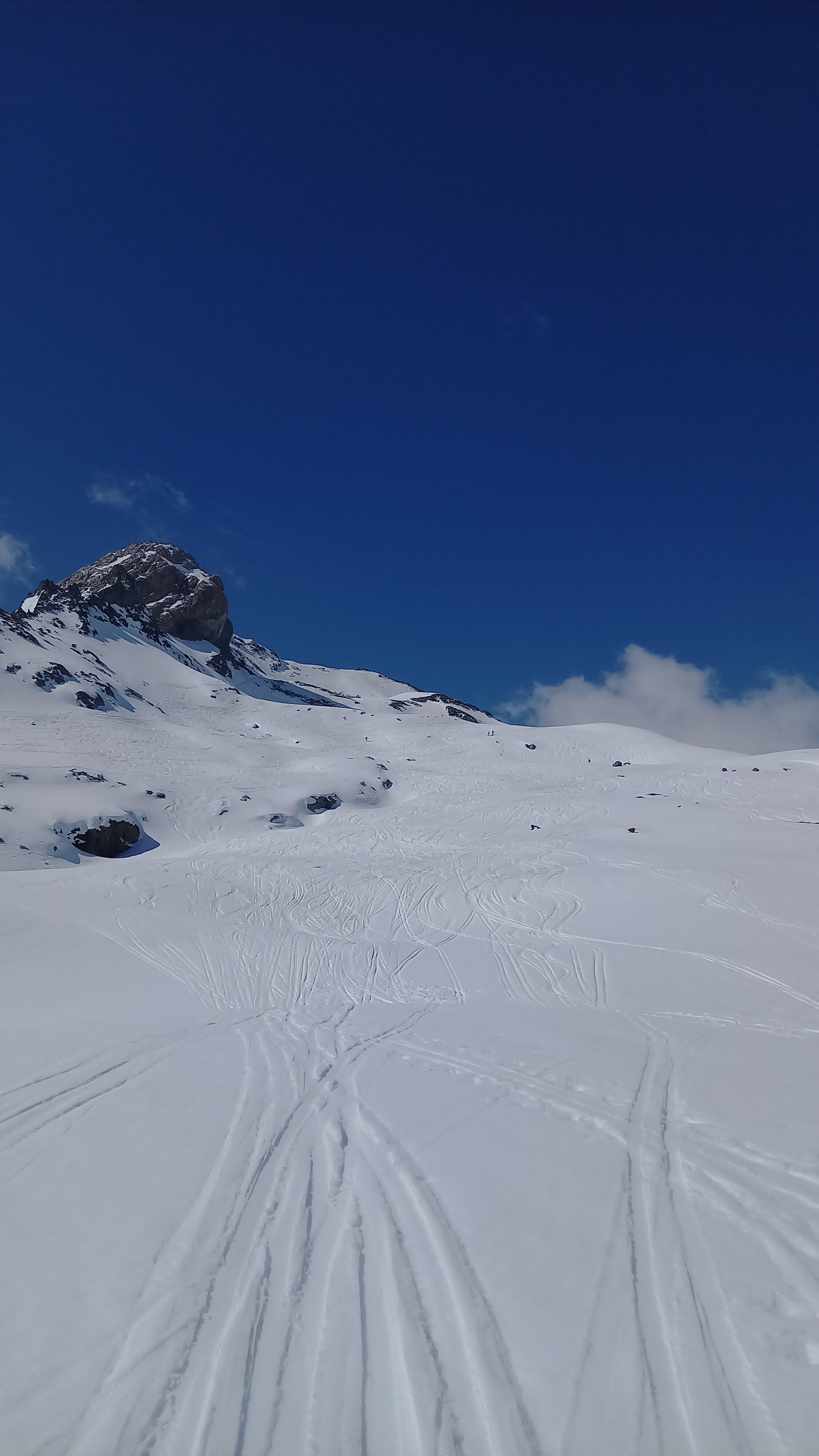 Leider gab es wie vorhergesagt in der Nacht quasi keine Abstrahlung, so dass wir im Flachen schon beim Aufstieg teilweise über Knie in den extrem schweren Schnee einbrachen. Dazu kam sehr schlechte Sicht, so dass wir uns auf Höhe 2550 in dickem Nebel zum Abfahren entschlossen. Kurz darauf riss es komplett auf, so dass wir wieder auffellten um den Piz Turba doch noch in Angriff zu nehmen. Im Schlusshang oberhalb Forcellina stiessen wir dann auf zahlreiche Tourengänger vom Skigebiet Bivio kommend. Da der Schlussakkord ohne Harscheisen nicht sehr spassig aussah, die Zeit schon fortgeschritten war und ein garstiger Wind bliess fuhren wir auf Höhe 2950 ab.