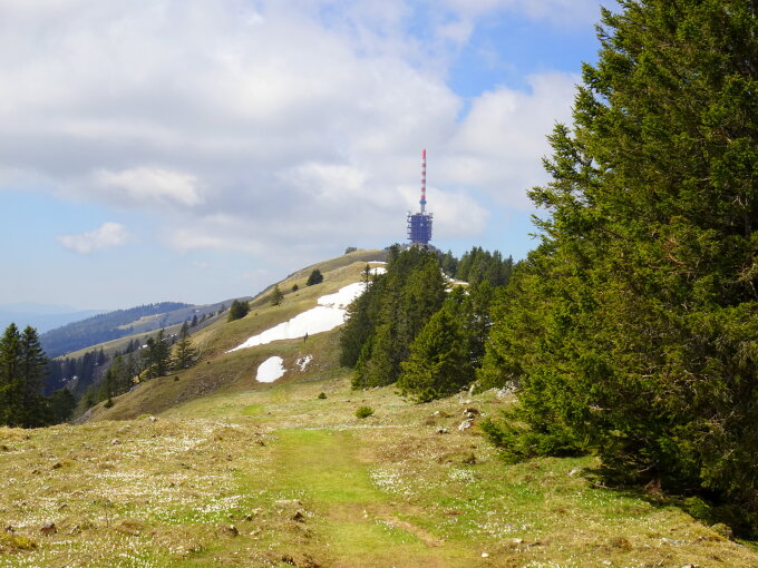 Weg sehr gut und meistens trocken. Zuoberst auf dem Grat einige Schneeflecken die problemlos umgangen werden können.