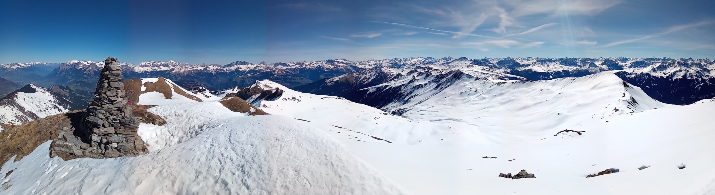 Lohnende Tour über den Grat, dieser ist jedoch zum grösstenteil abgeblasen und aper.
