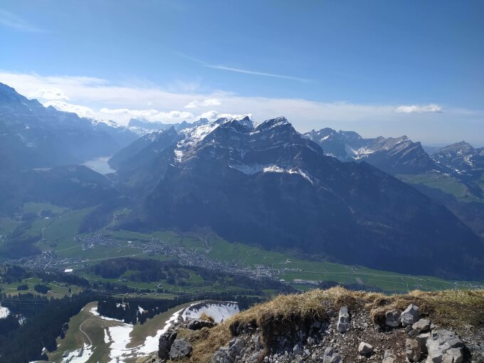 Schneefrei machbar. Im Kamin sehr viel loses Geröll, obere Haken der Kette sind ausgerissen. Machbar jedoch mit Vorsicht vor Steinschlag. Oberhalb Kamin kleine Schneefelder die zu umgehen sind.