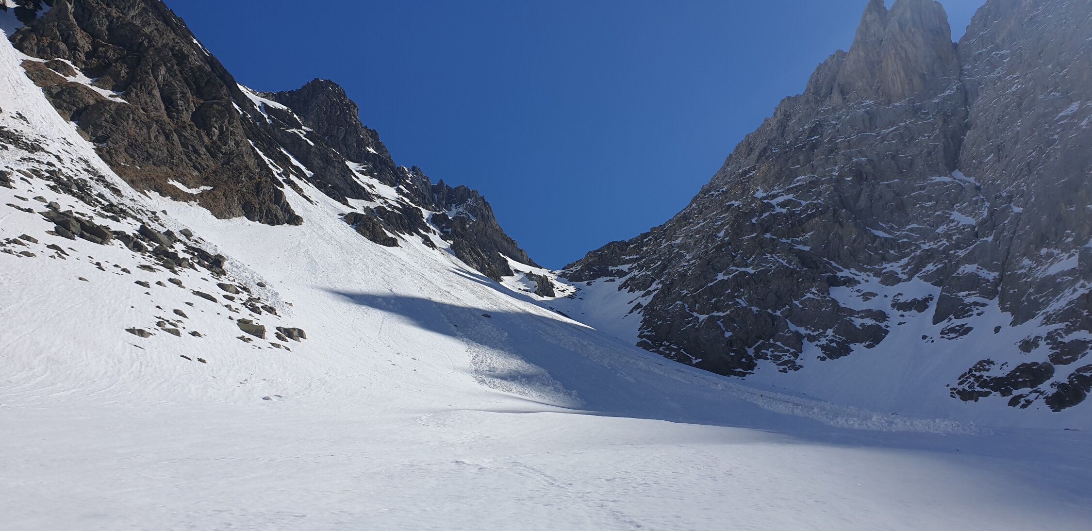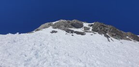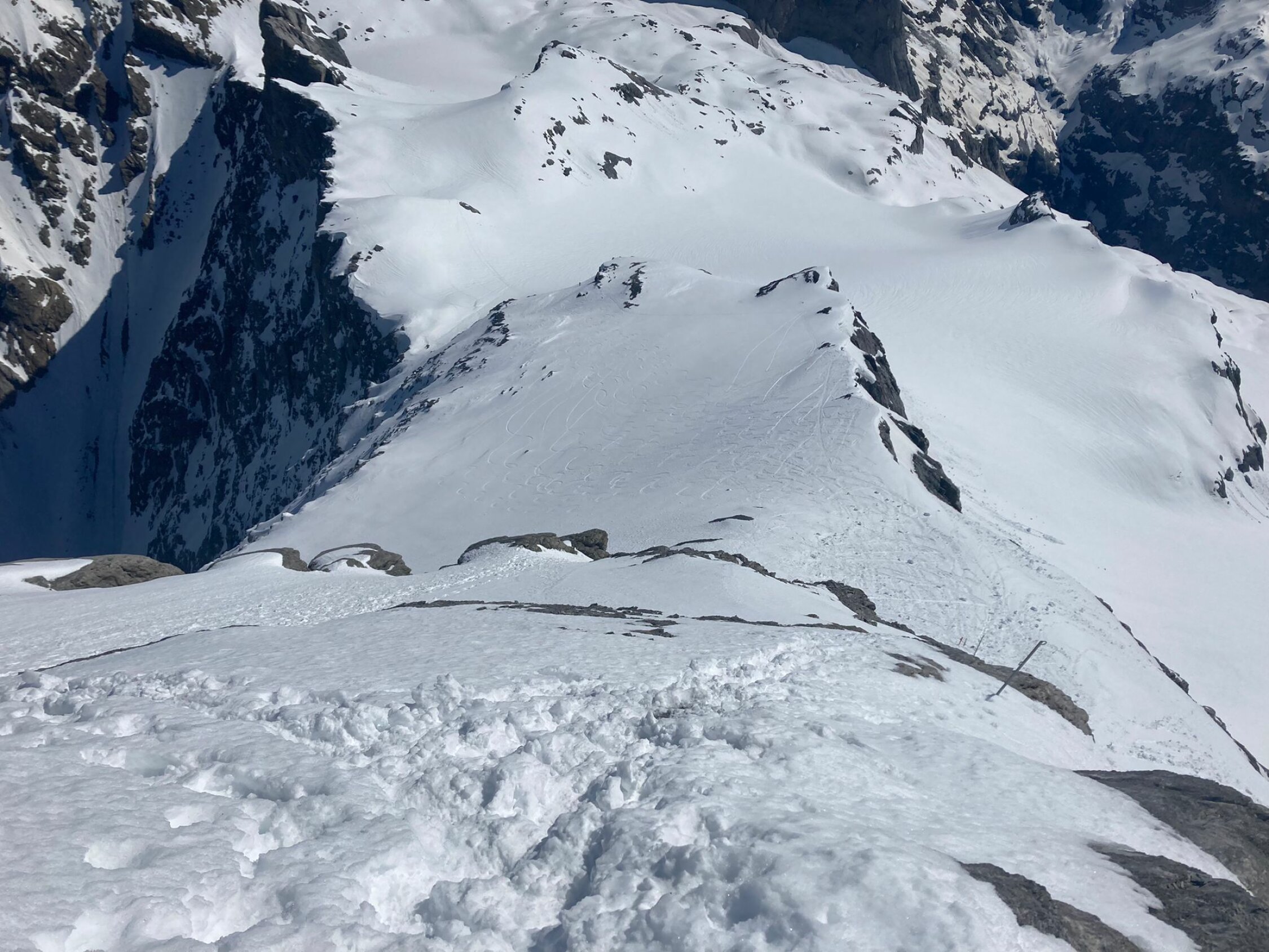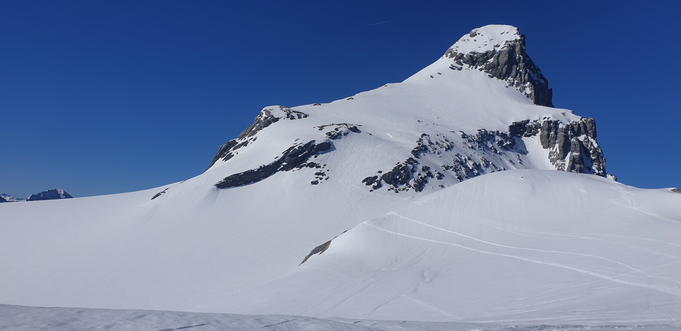 Start am 6.00 Uhr bei der Nähe von der Sittlisalp Seilbahn, die Ski mussten nur einige Minuten getragen werden, dann noch einige apere Stellen bis Brunnialp, schon sehr bald mussten die Harscheisen montiert werden, der letzte Teil der Ruch Chälen war dann auch heute anspruchsvoll dem Namen sehr gerecht, Steigeisen waren da sehr hilfreich, der Aufstieg in Richtung Skidebot noch mit Pulverschnee Resten, der Gipfelkopf mit guten Trittschnee rechts den Eisenstangen bis zum Grat, die Ruch Chälen um 12 Uhr immer noch Pickelhart, dieser Teil sicher nur machbar Skitechnisch gesehen.