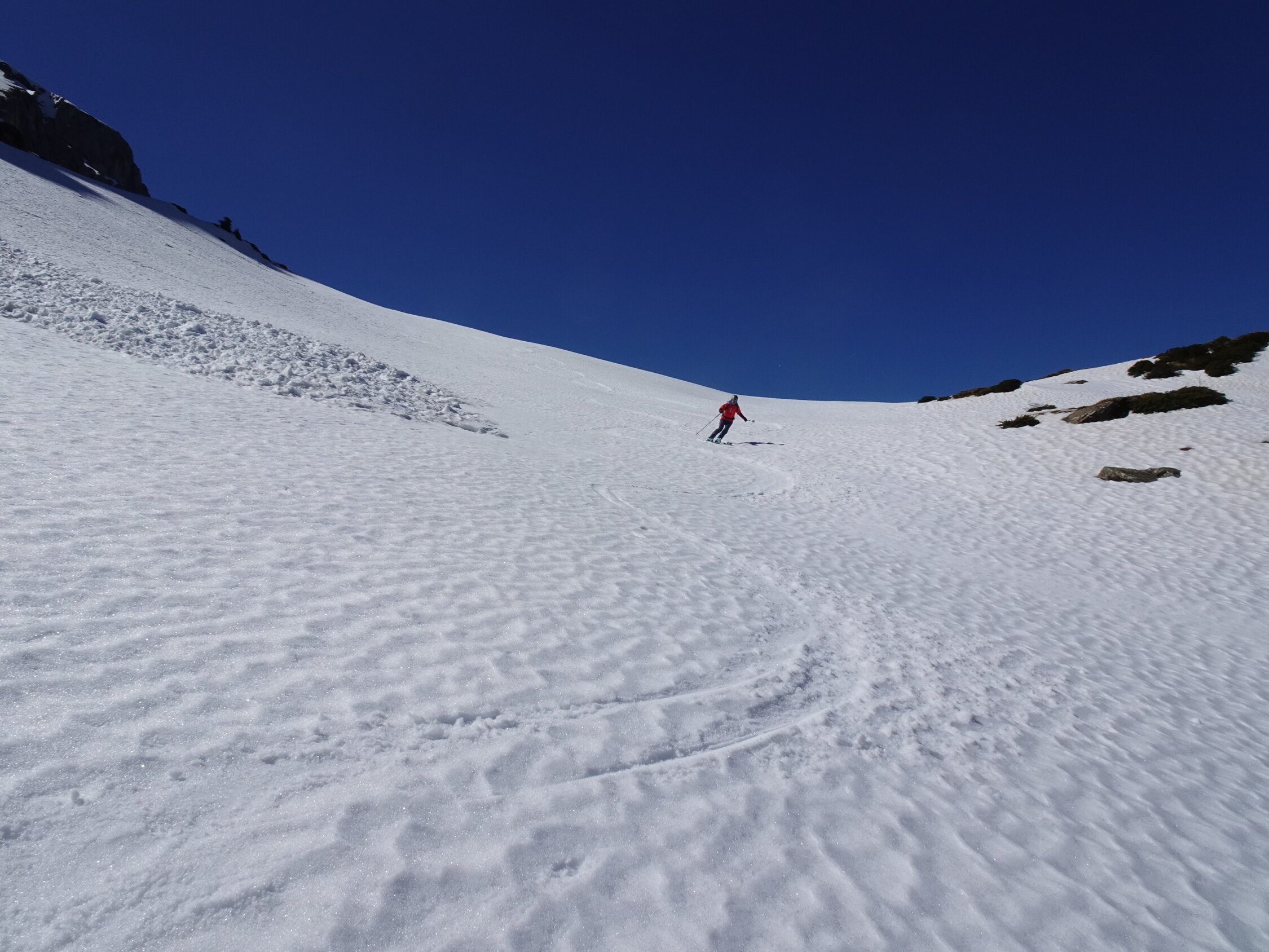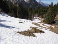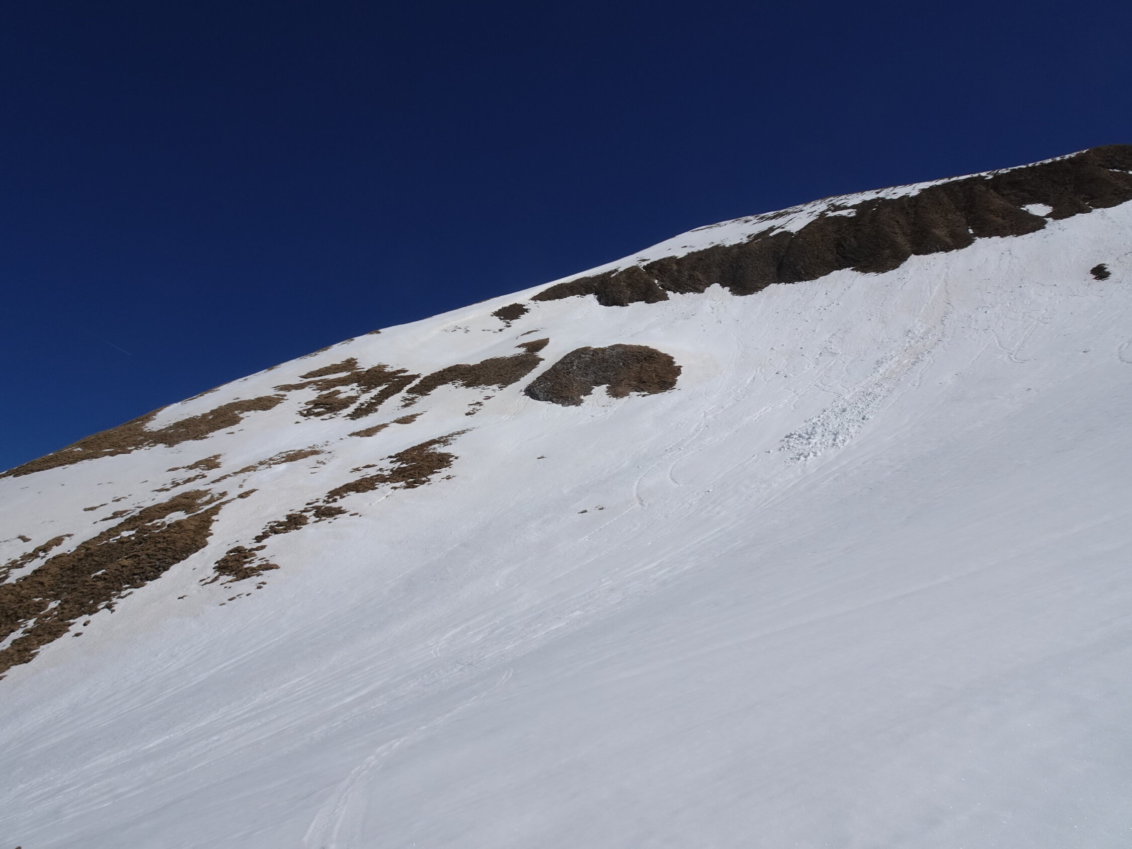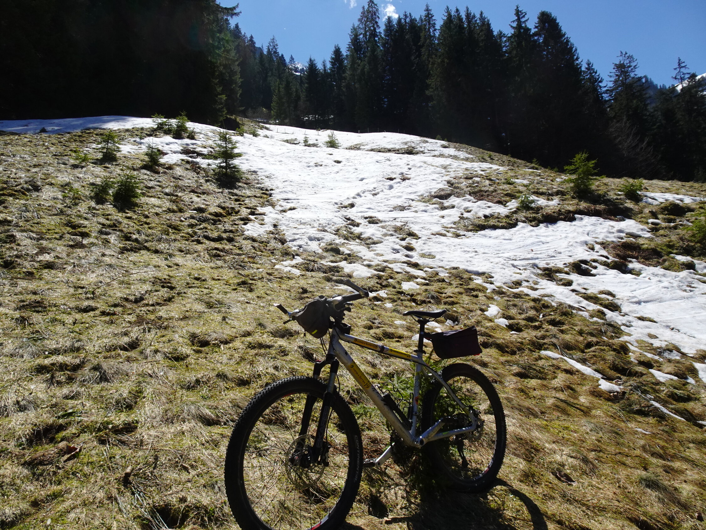 Velo bis 1300m gefahren und geschoben ab da bis 1380m noch kleine Apere Stellen und danach noch durchgehend Schnee ausser in der letzten grossen Querung einige kurze lücken