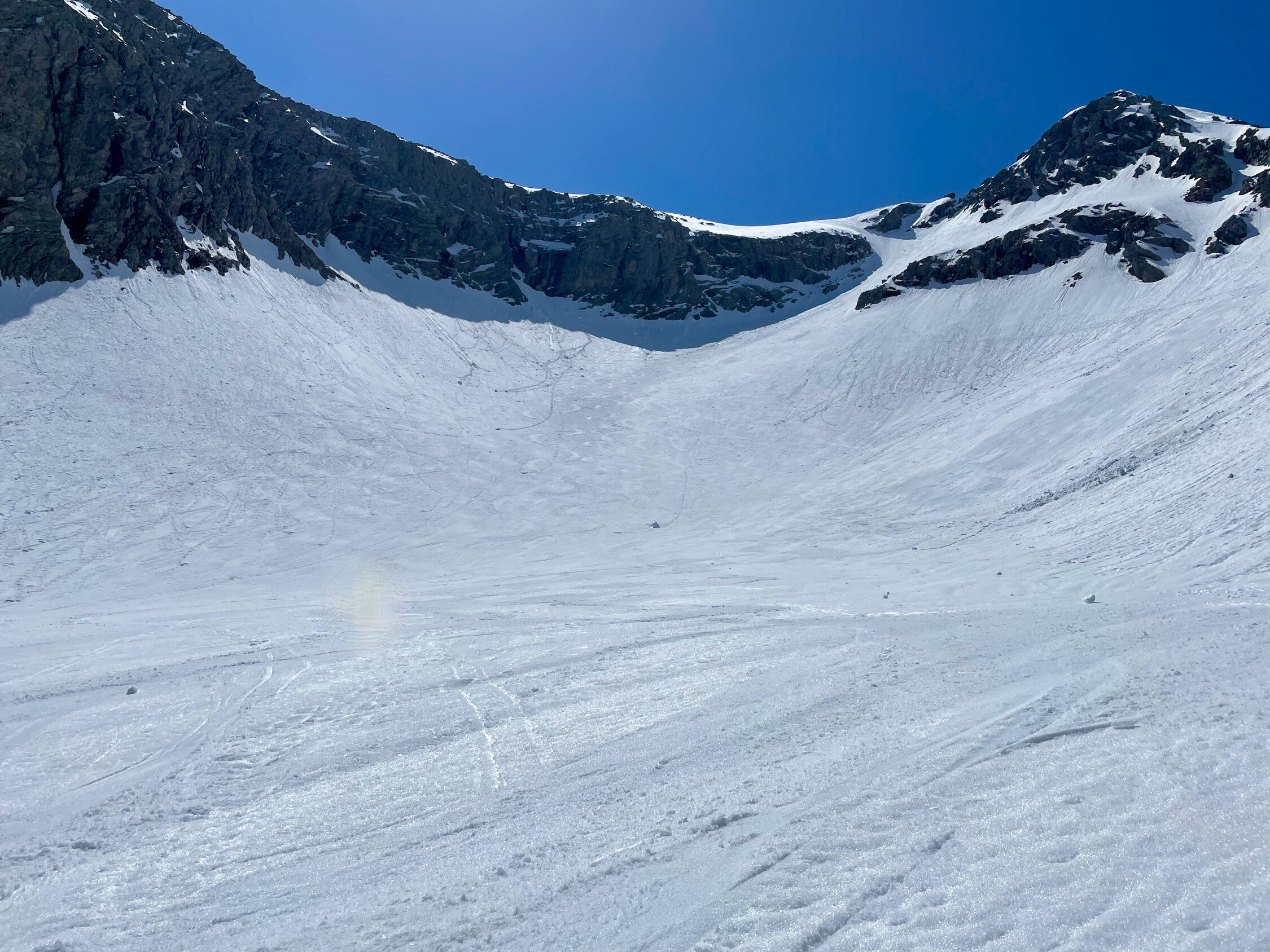 Mein drittes mal am Wilden und so schön waren die Verhältnisse noch nie. Mit dem Rad bis hinter die Pointhütte. Aufstieg in die Gamswanne und zum Gipfel hoch mit Steigeisen im festen Schnee/Firn gut machbar. Haben zur Abwechslung mal nicht die Querung in die Gamswanne gemacht, sondern wir sind die Rinne hoch, welche man bei der Abfahrt runter fährt. Ging auch gut.
