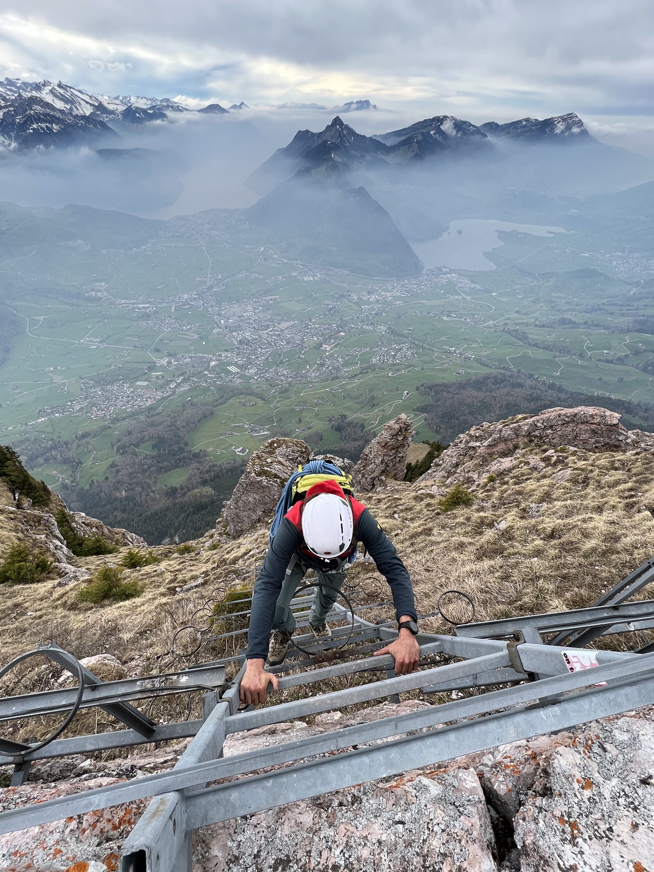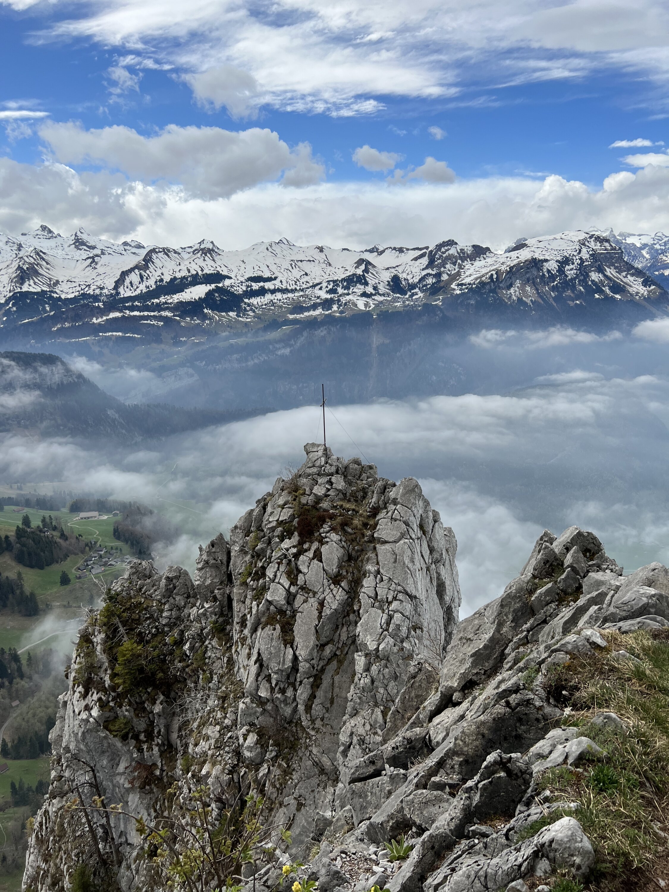 Wir sind vom Mythenbad via Adlerspitzli, Ruchband, Wyss Wändli und Rotgrätli auf den Gipfel gestiegen und via aktuell noch geschlossenen Grüeziweg hinunter.