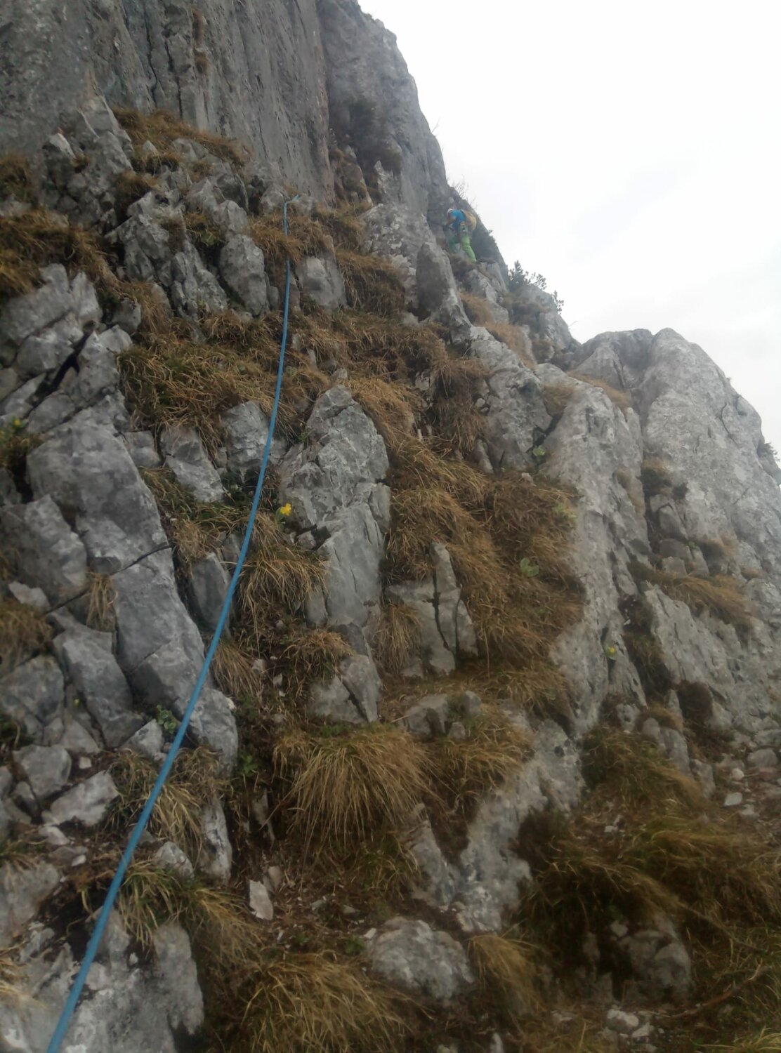 Bei Nässe warten bis es trocken ist. Noch liegen vom Winter immer wieder loses Geröll rum - vorsicht bei mehreren Seilschaften.