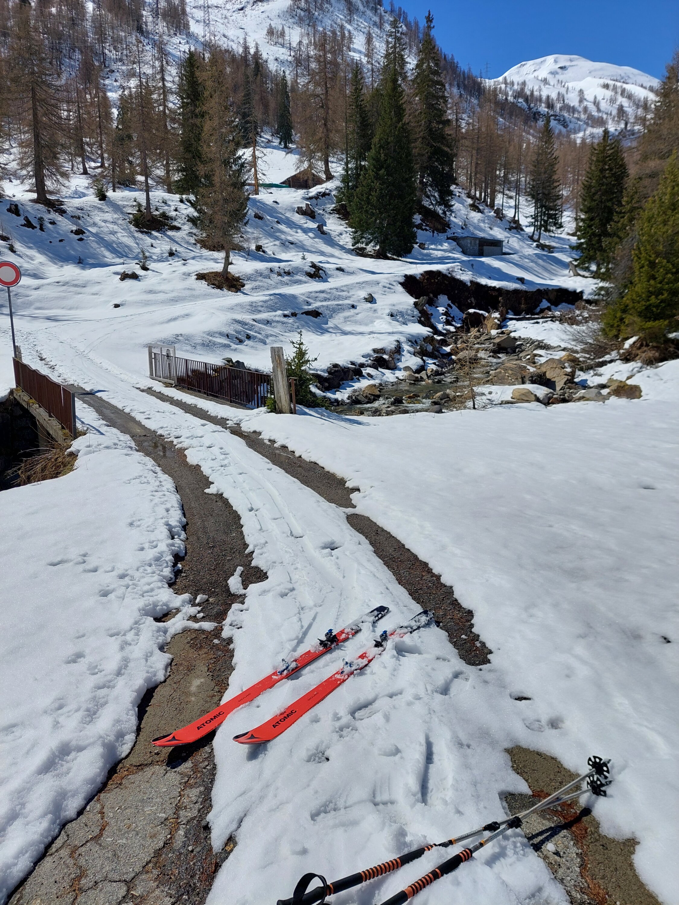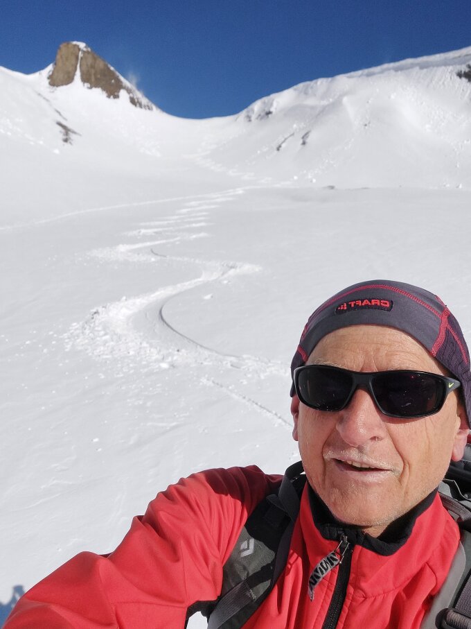 Nach guter Abstrahlung war alles durchgefroren und hart. Abfahrt 9.30 Uhr. Perfekter Firn bis zur Val d'Olgia. Im unteren Teil durch den Wald noch etwas hart und ruppig.