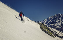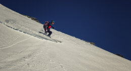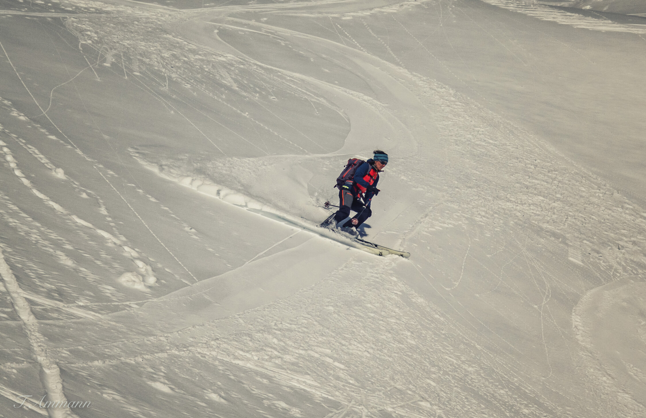 Ausser Nord : nach klarer Nacht, sehr regelmässige, harte Grundschicht mit 3 cm Neuschnee - um 11h00 bereits feucht