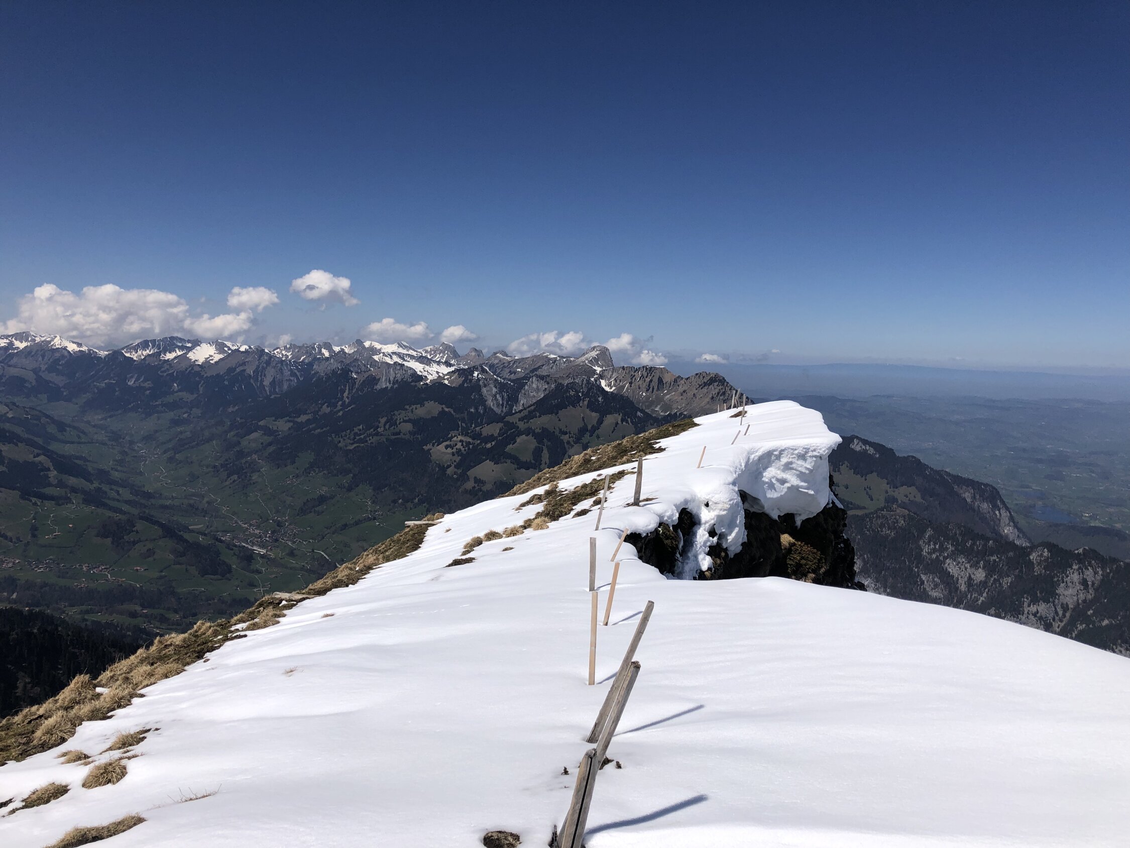 Das ‚gut‘ deshalb, weil die Wanderwege ab Schwandegg noch gesperrt sind. Unterhalb Cheesbödi muss die Wächte in Aufstiegsrichtung links umgangen werden. Ab dort liegt Schnee auf dem Wanderweg, kann aber gut umgangen werden, Stöcke hilfreich. Im Wald bis Schwandegg, der ziemlich geholzt wurde, sind die Wege trocken.