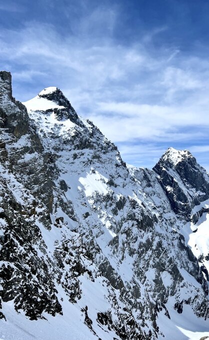 Abfahrt um 12 Uhr war ideal, oben Pulver unten gut drehender Sulz. Imposante und heute vorallem sehr einsame Tour bei bestem Wetter und top Bedingungen.