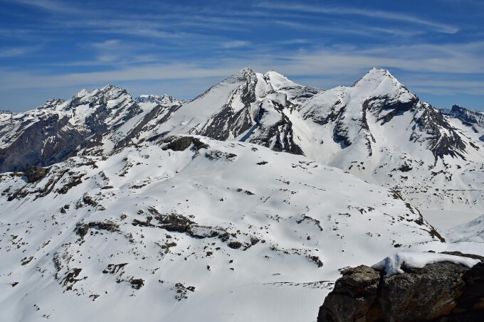 Eigentlich sogar sehr gut, aber die oberen Hängen waren sehr hart und die Harscheisen waren kein Luxus. Über die ganze route hatte es noch genügend Schnee obwohl man der Umgebung nach anders vermuten könnte. Dann an einigen Hängen überraschend noch etwas Pulver und weiter unten Sulz vom feinsten!