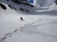 Ab da dann unverspurter traumhafter Sulzschnee im ganzen Wildgrimmi und zuunterst auf letzten Schnee Resten bis 30m vors Velo