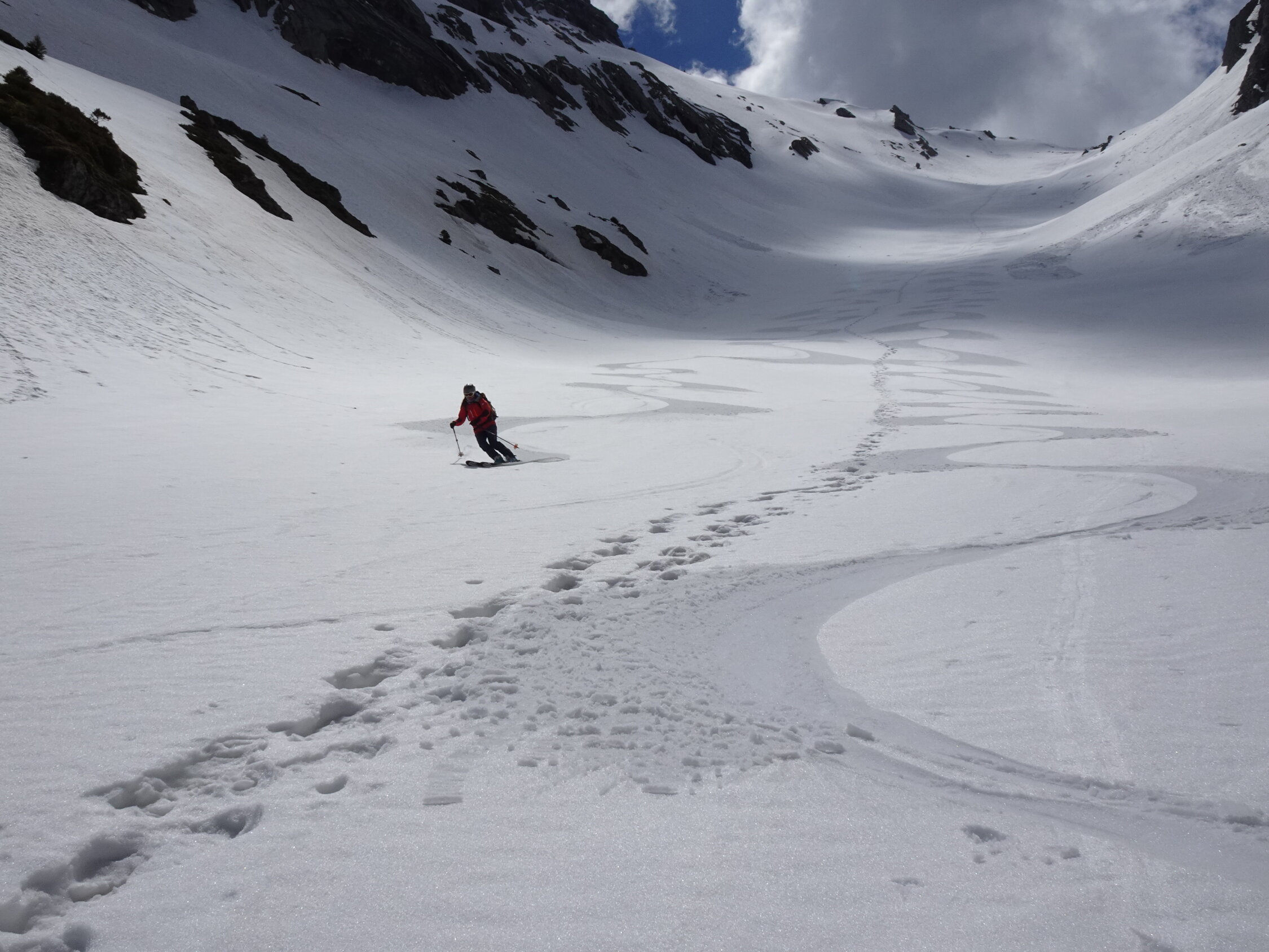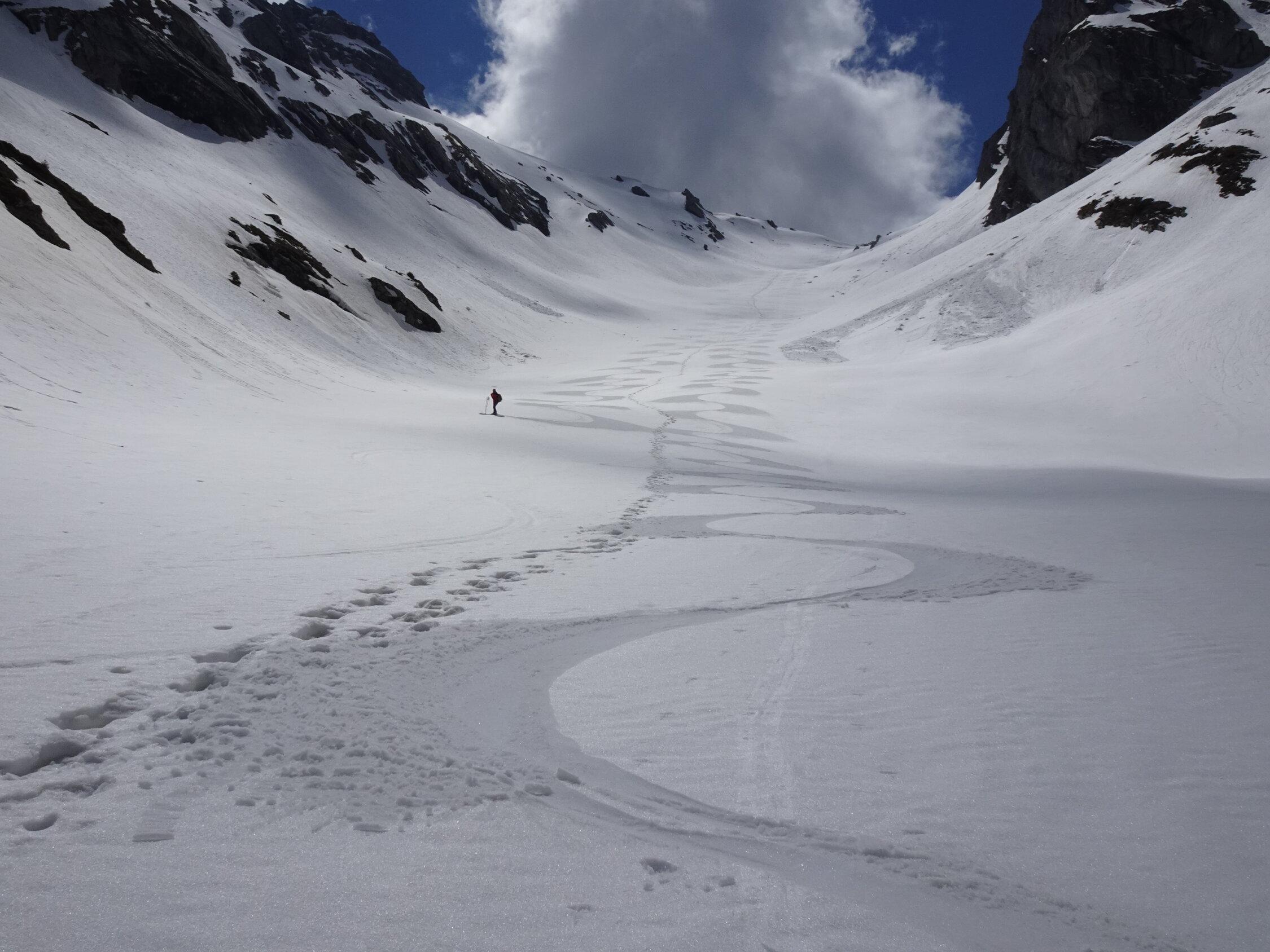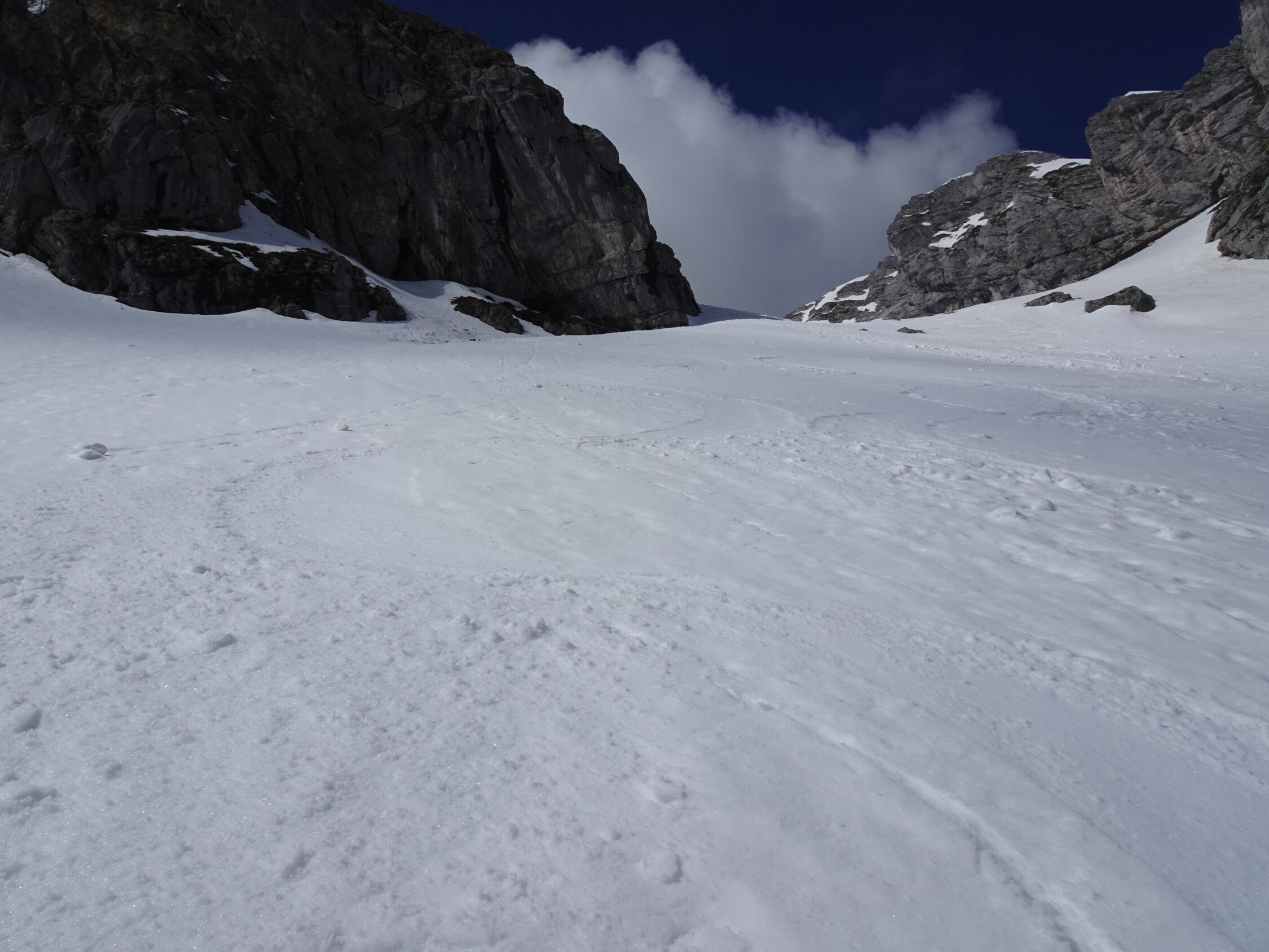 Danach noch bis 1600m Skitragen und weiter mit geschlossener Schneedecke ins Wildgrimmi.