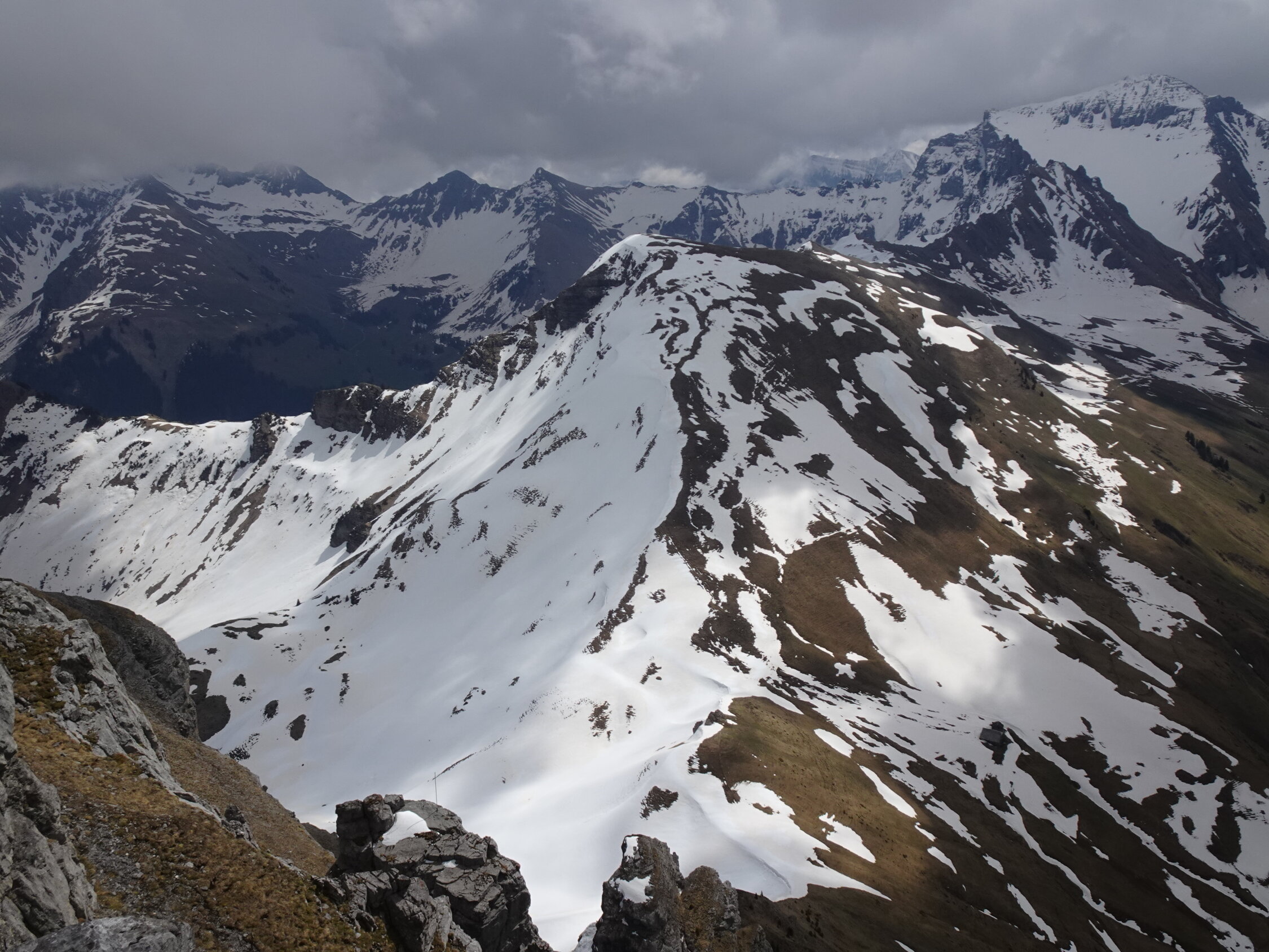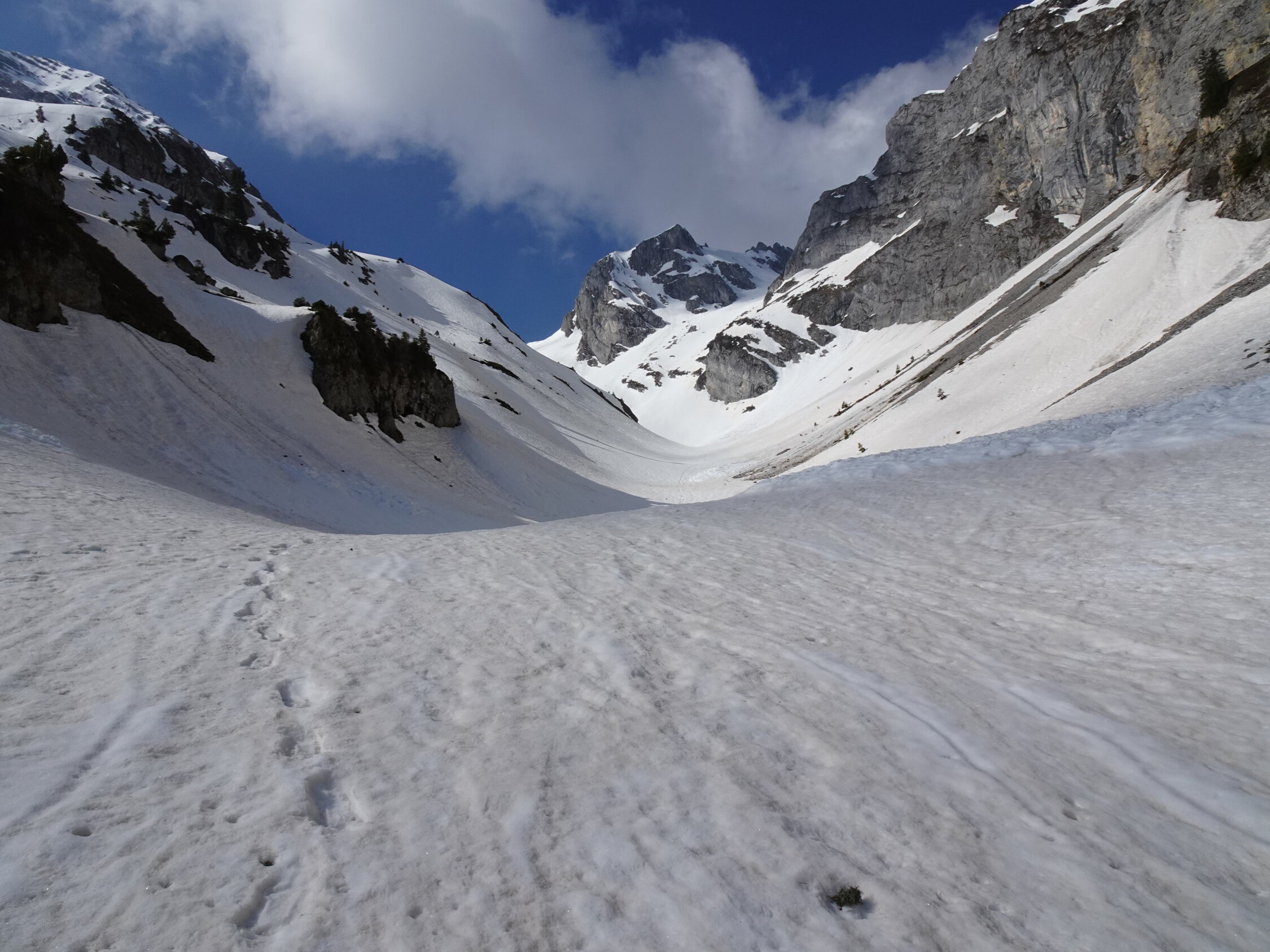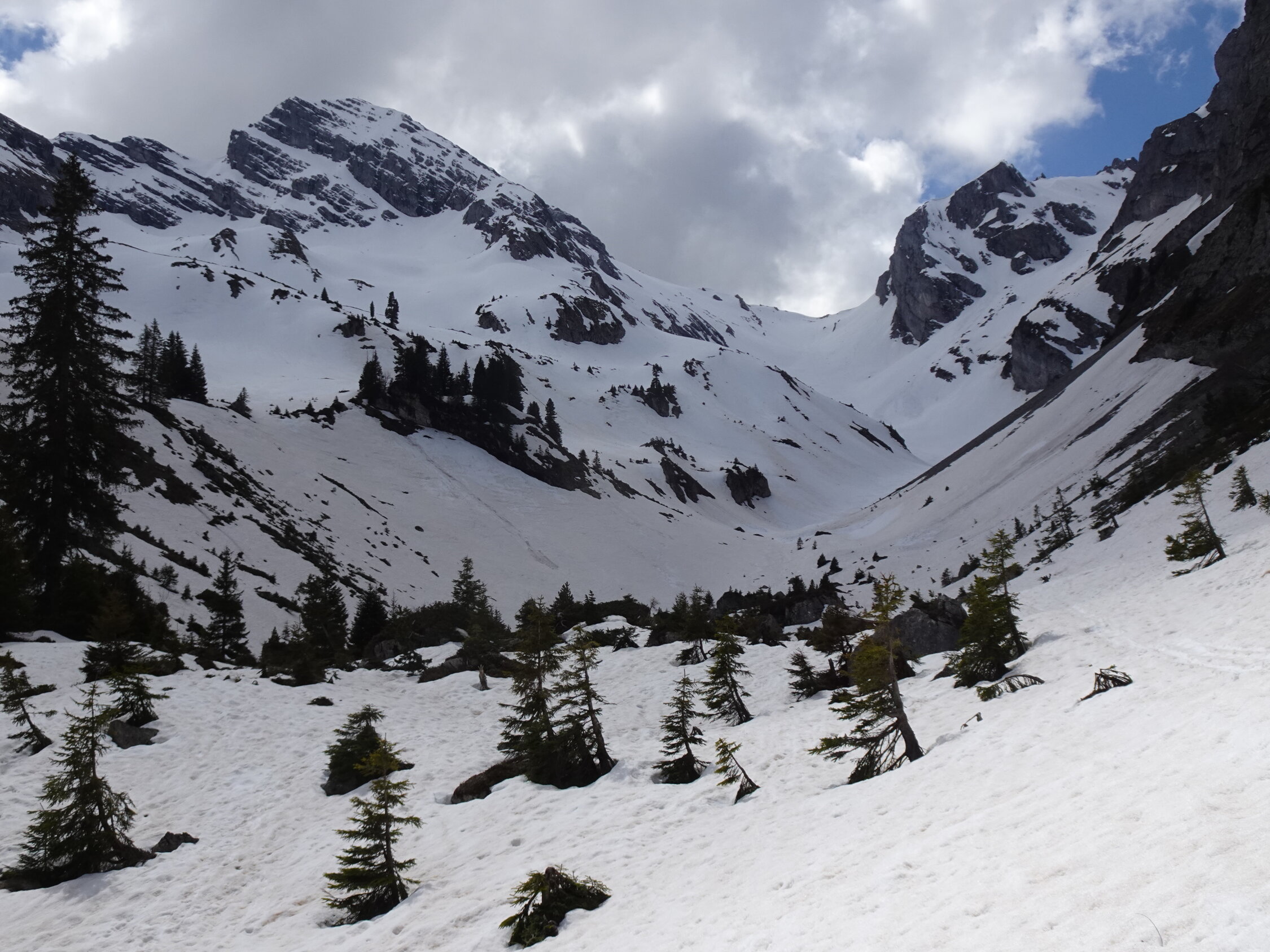 Danach noch bis 1600m Skitragen und weiter mit geschlossener Schneedecke ins Wildgrimmi.
