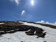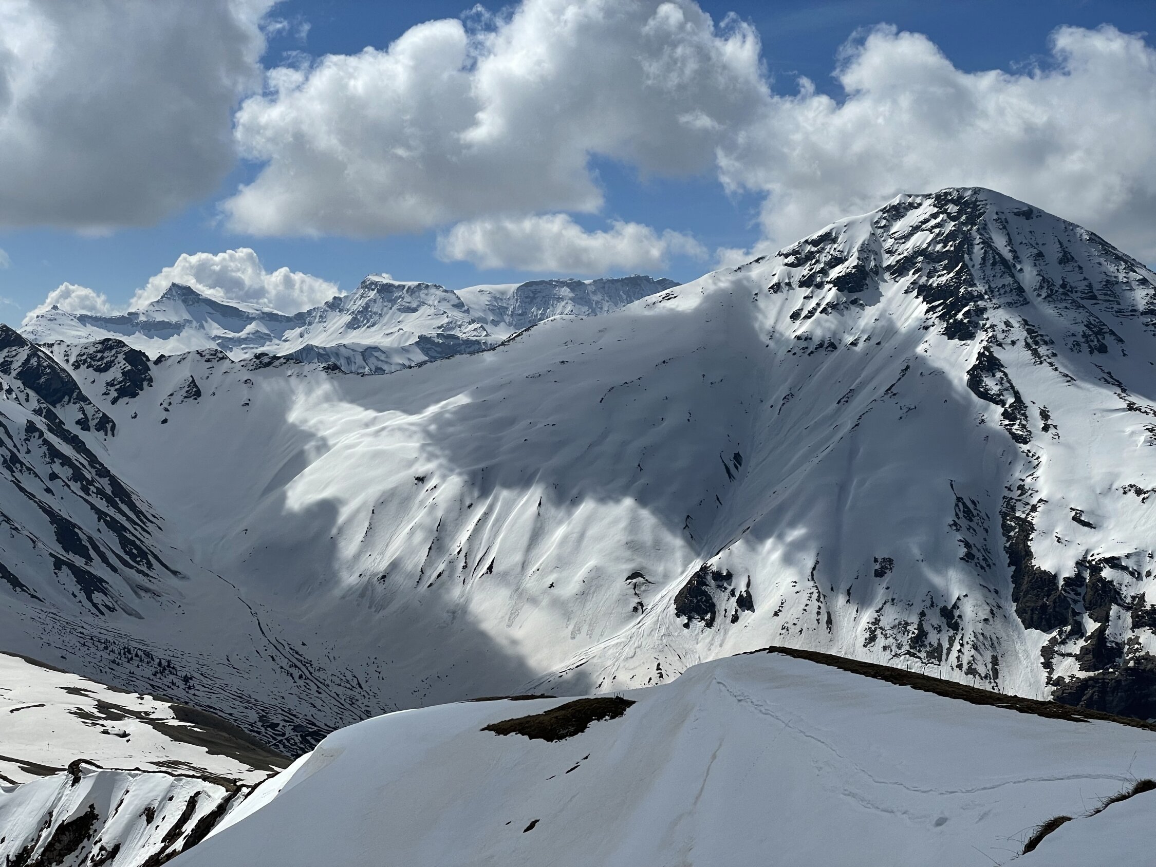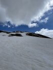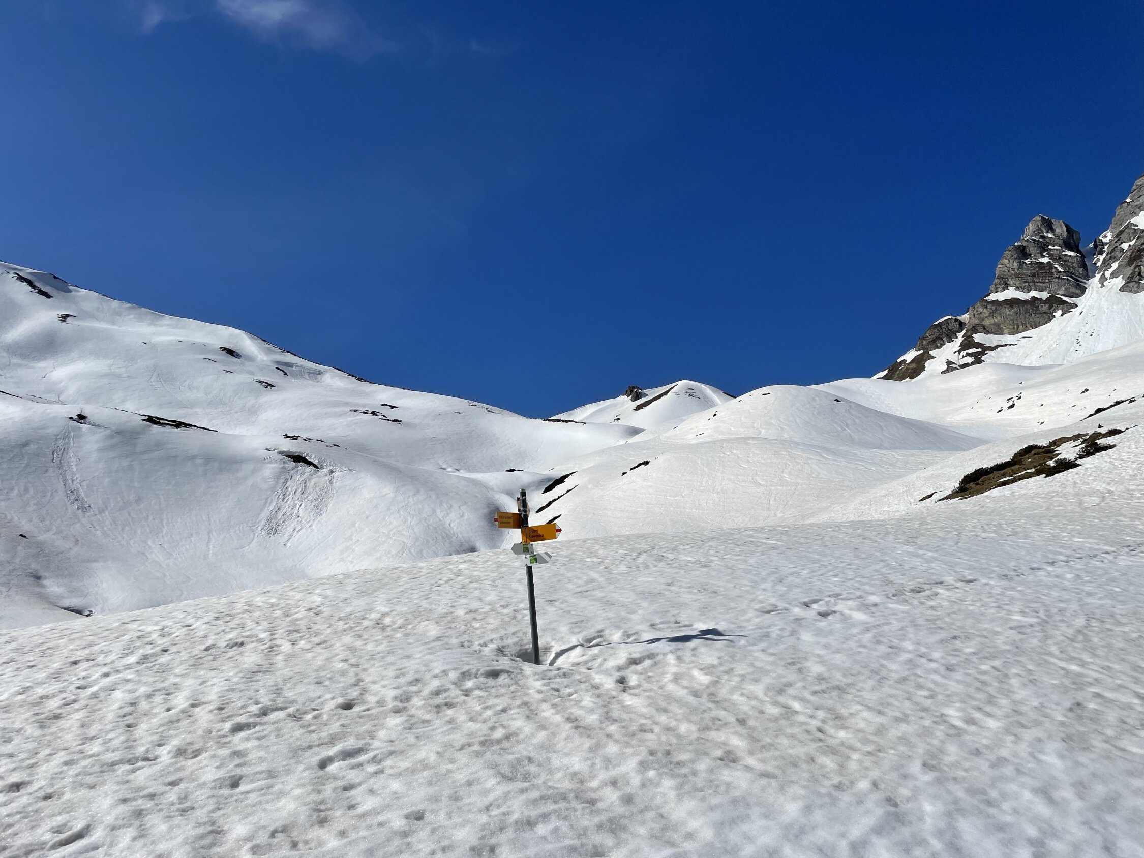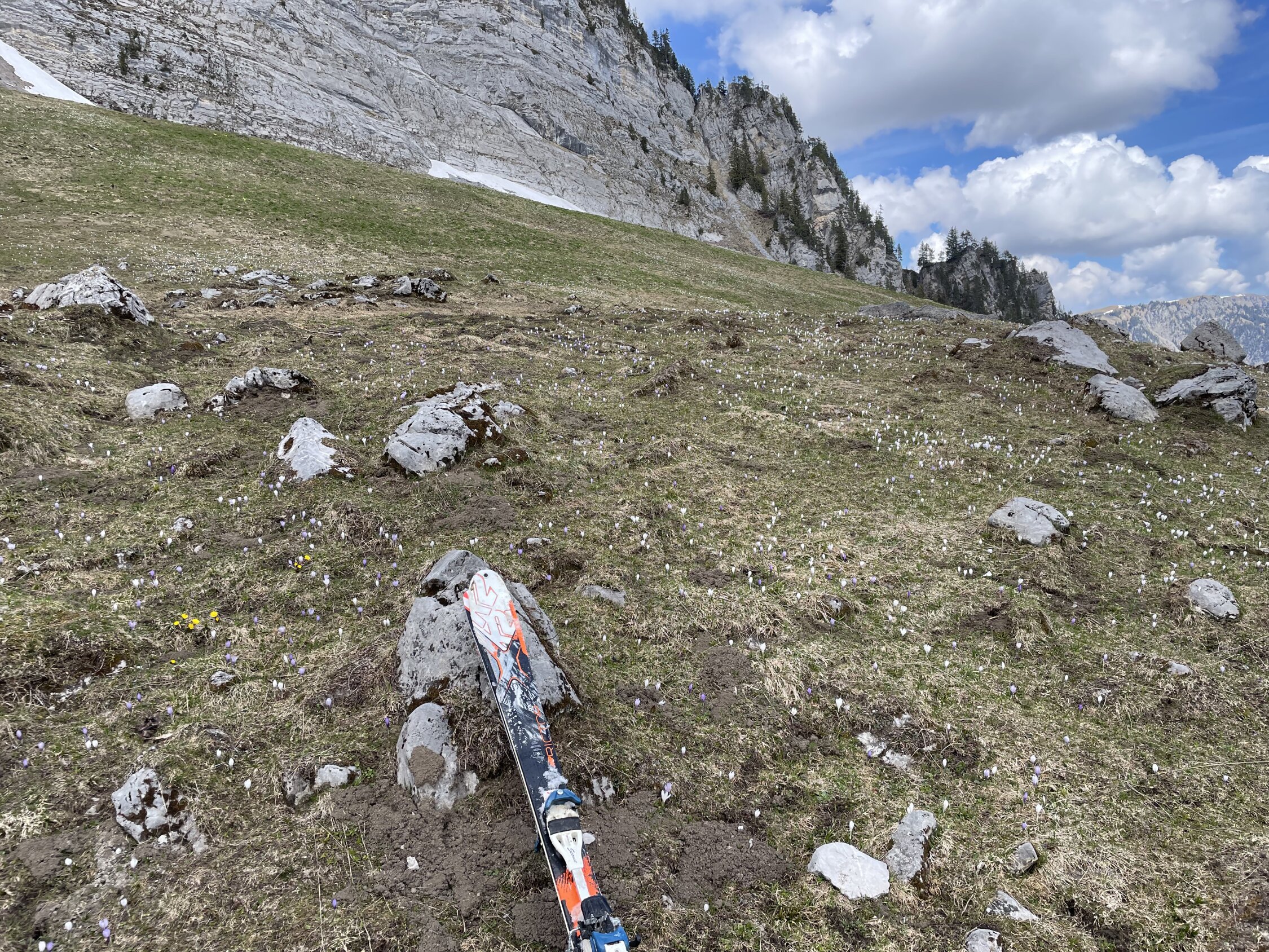 Die Bewertung versteht sich für Leute, die etwas Skitragen nicht scheuen. Mit dem Auto bis rund 1400 MüM die Strasse hoch (Parkuhr bezahlen), dann 40 Minuten Tragen bis zum Ende der Alpstrasse 1740 MüM. Von da an bis zur Furgg noch schön Schnee, Gipfelhang dann nur knapp, aber immerhin gerade so durchgehend machbar. Schnee dank guter Abstrahlung durchgehend tragend und firnig. Ich habe dort Harscheisen montiert, bessere Techniker können es ohne. Nach schöner Gipfelpause war die Abfahrt um 11.30 dann tipptopp, leider nicht mehr bei Sonne, da inzwischen Quellbewölkung aufgezogen war.Das beeinträchtigte die Sicht zeitweise leicht. Aber das ist Jammern auf höchstem Niveau, die Abfahrt war bestens bis zum Schneeende.