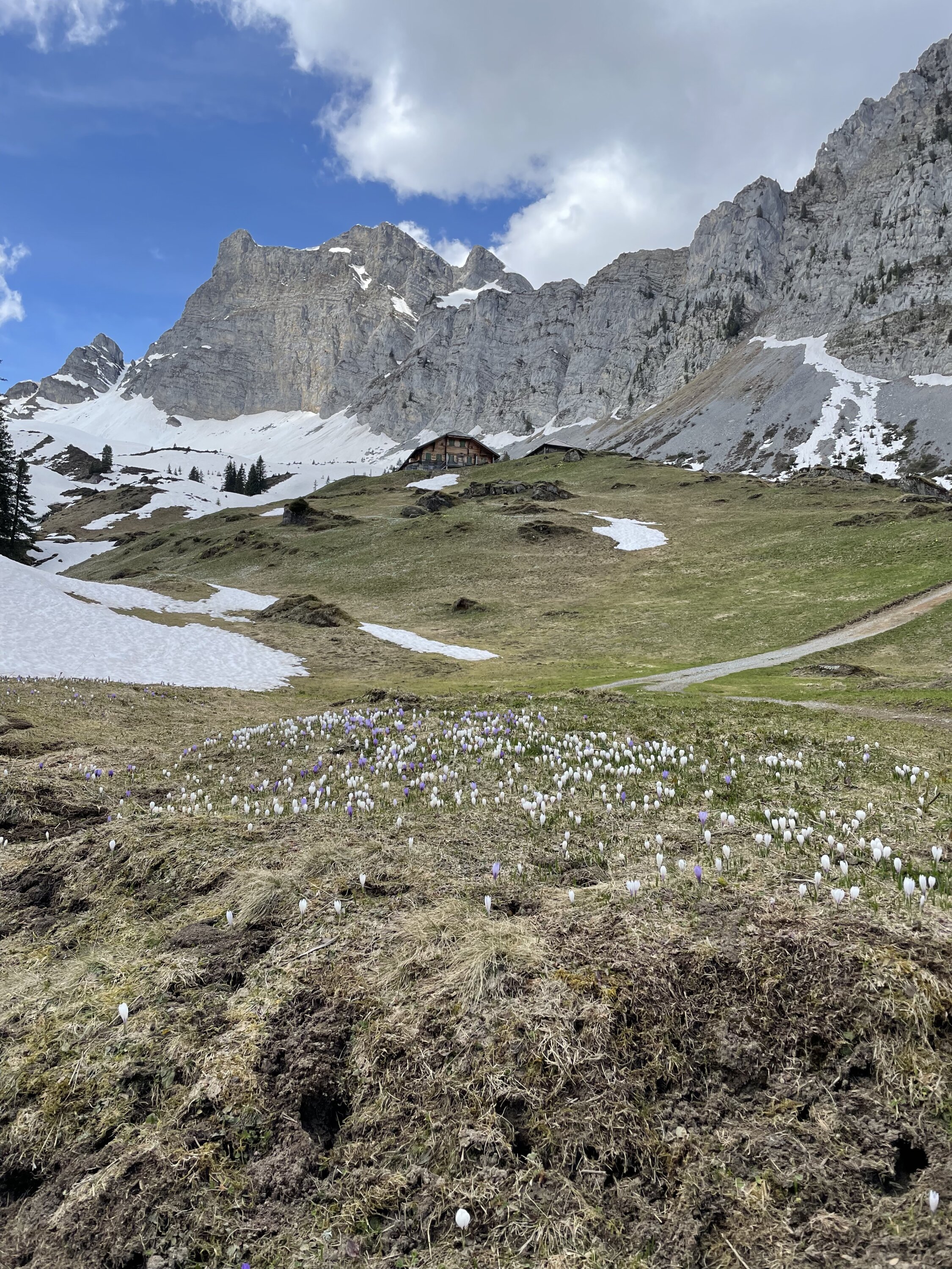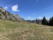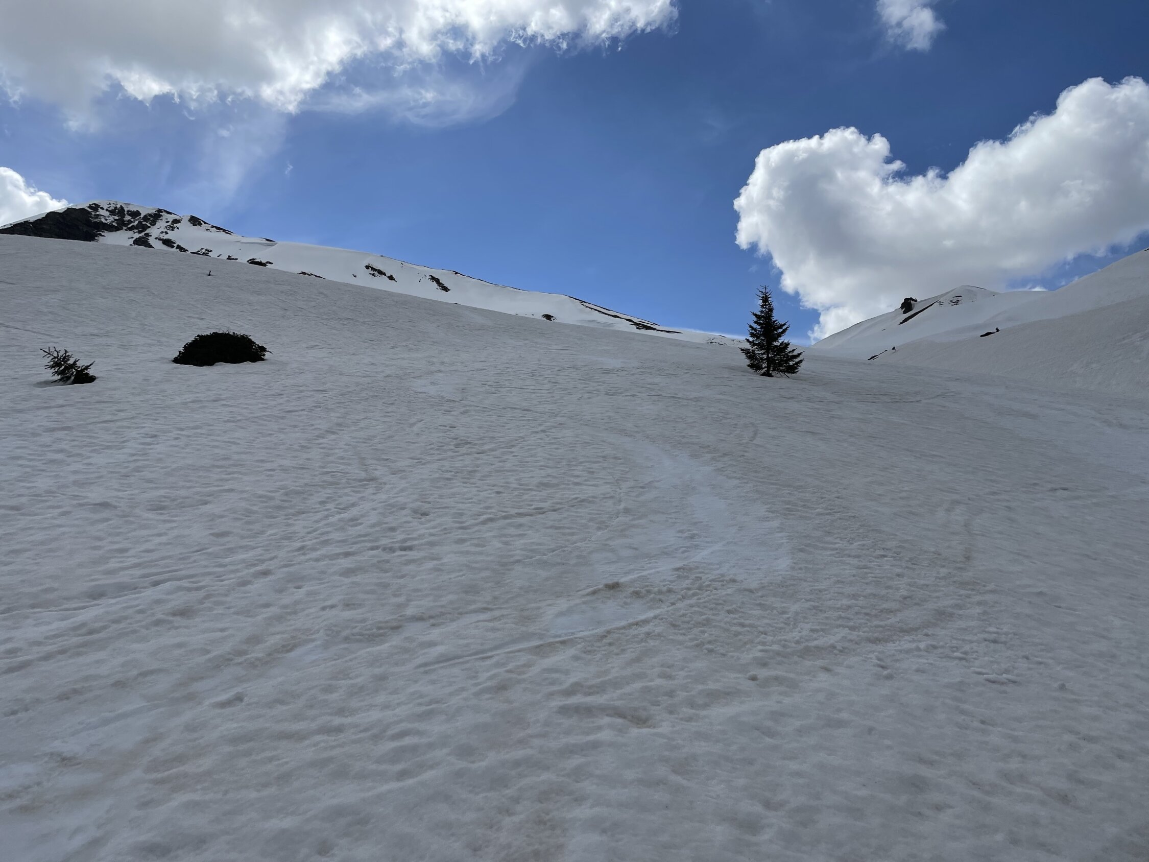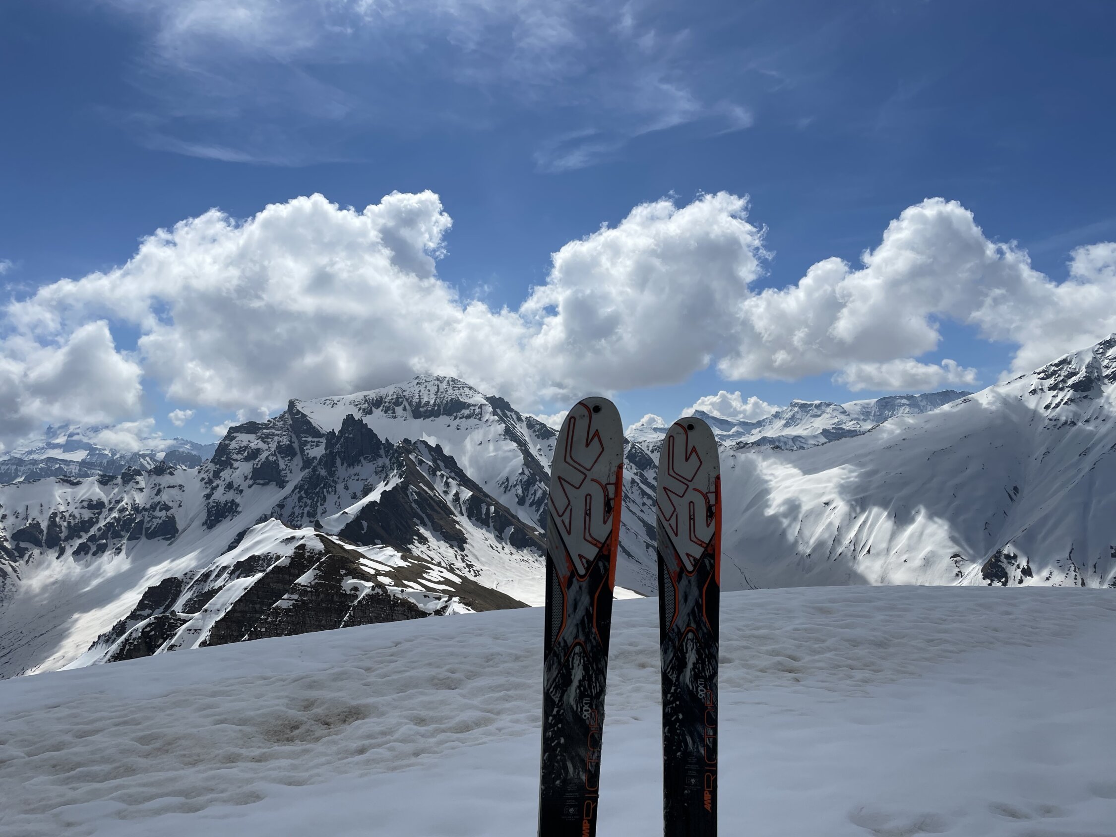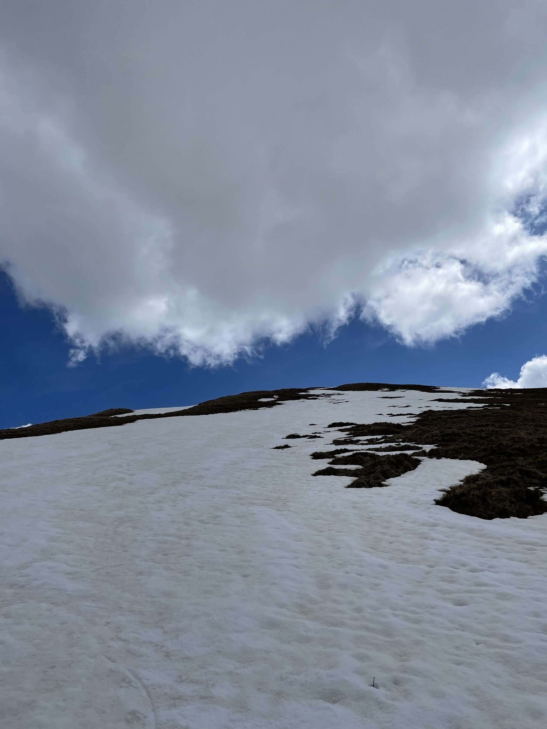 Die Bewertung versteht sich für Leute, die etwas Skitragen nicht scheuen. Mit dem Auto bis rund 1400 MüM die Strasse hoch (Parkuhr bezahlen), dann 40 Minuten Tragen bis zum Ende der Alpstrasse 1740 MüM. Von da an bis zur Furgg noch schön Schnee, Gipfelhang dann nur knapp, aber immerhin gerade so durchgehend machbar. Schnee dank guter Abstrahlung durchgehend tragend und firnig. Ich habe dort Harscheisen montiert, bessere Techniker können es ohne. Nach schöner Gipfelpause war die Abfahrt um 11.30 dann tipptopp, leider nicht mehr bei Sonne, da inzwischen Quellbewölkung aufgezogen war.Das beeinträchtigte die Sicht zeitweise leicht. Aber das ist Jammern auf höchstem Niveau, die Abfahrt war bestens bis zum Schneeende.