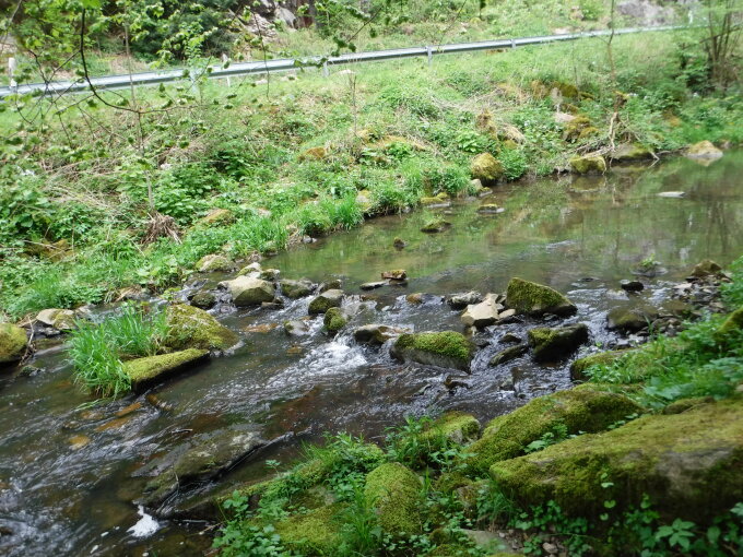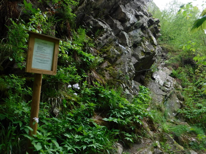 Die Aussicht bietet lediglich Tiefblicke und Blicke nach Süden mit dem Falkenstein. Im Tal gibt es noch weitere Felswände, die den Kletterern vorbehalten sind.