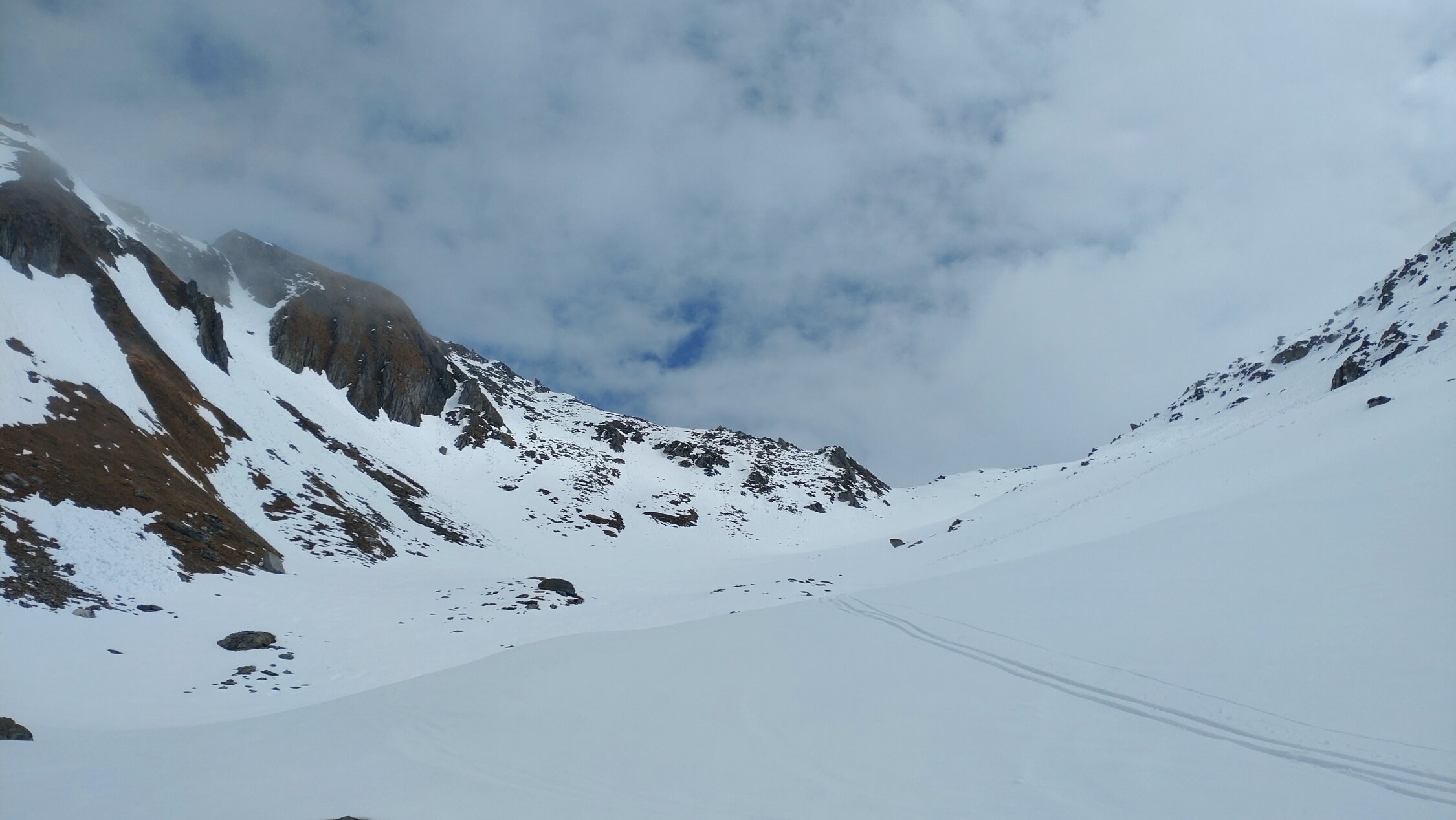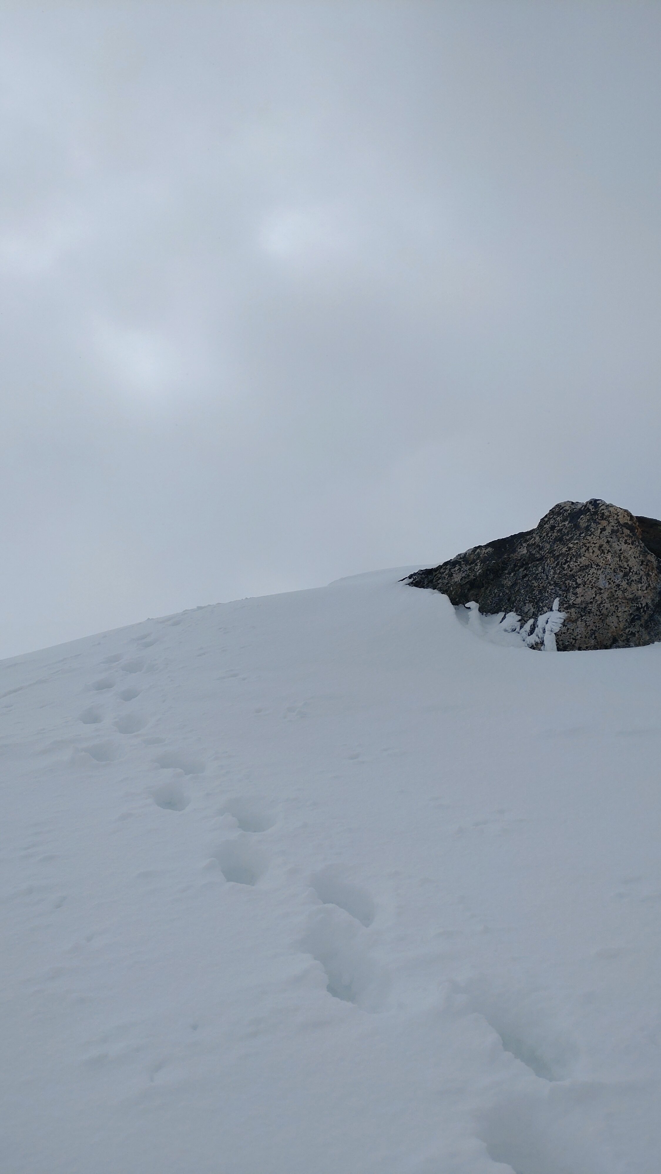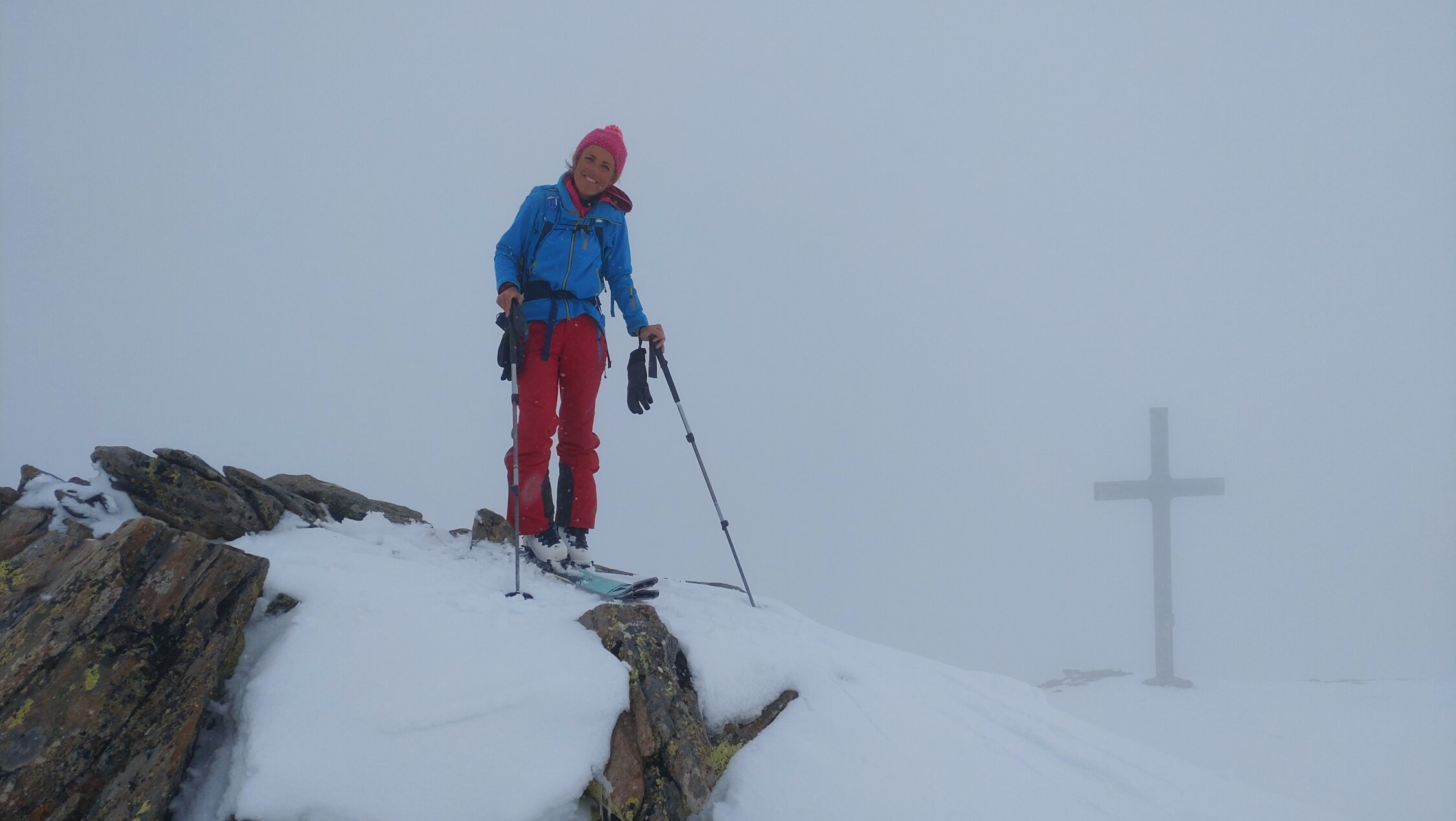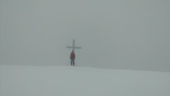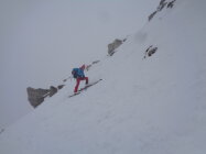 Für diese alpine Skitour gehören Pickel und Steigeisen mit. Man sollte auch bei solchen Wetterverhältnissen untewegs sein, um weiter zu kommen, und wichtige Erfahrungen am Berg zu sammeln.