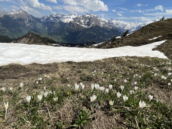 Abstieg vom Stanserhorn technisch frei. Arvigrat noch sehr wenig Schnee.