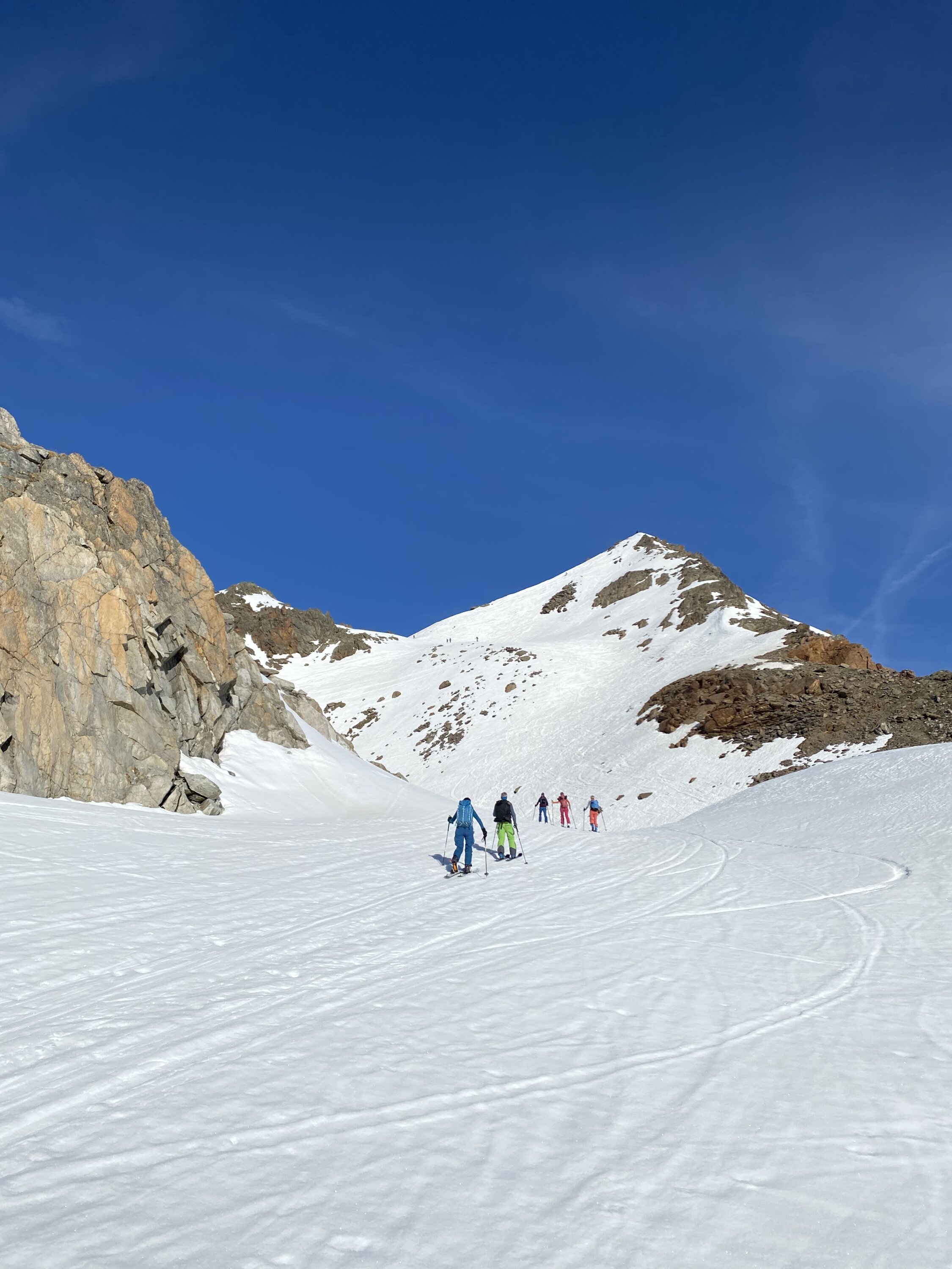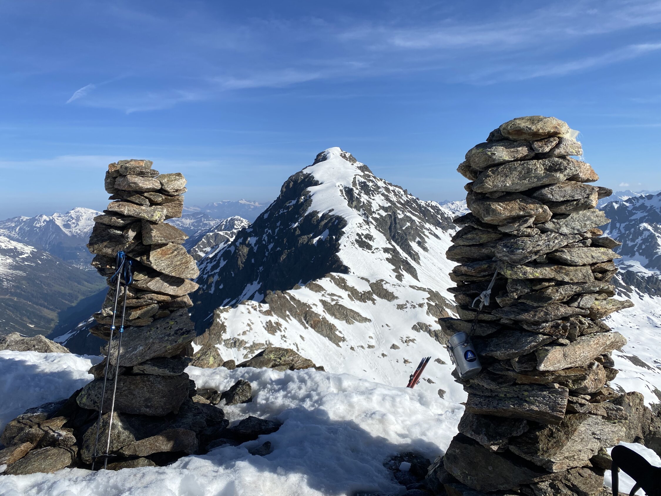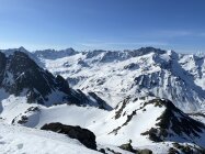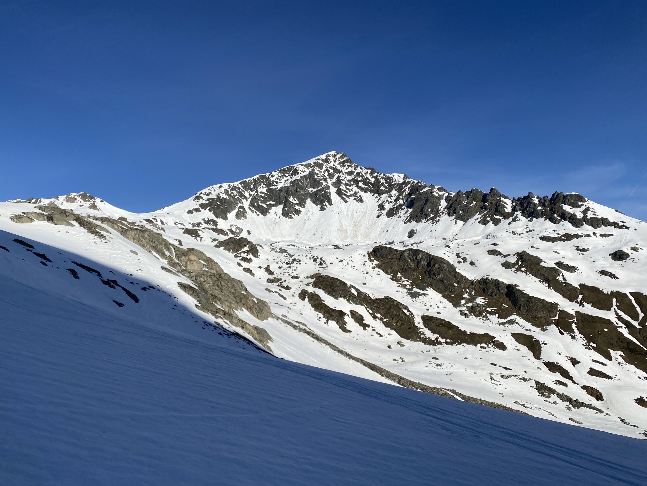 Wunderbare Wetterverhältnisse und überraschend viel Andrang am Parkplatz entlang der Fluelapassstraße als ich um 7 Uhr bei 5 Grad plus losgehe. Schneedeckedrägt im unteren Bereich gut - ausgenommen an den Geländekuppen und in der Nähe von Steinen rocken und Vegetation, die aus dem Schnee schauen. Aufstieg entlang des Tales auf der linken schattseitigen Talseite bei hartgesottenen Schnee sehr gut zu gehen und ohne die bereits wärmende Sonne. Aufstieg bis Gipfel problemlos. Abfahrt wie Aufstieg mit zumeist feinen Firn. Schneedecke ist allerdings mancherorts trügerisch und daher alles mit Vorsicht zu fahren. Wahrscheinlich ein hervorragender Abschluss dieser Saison. Und diese gänzlich Unfallfrei - da ist man auch dankbar !!