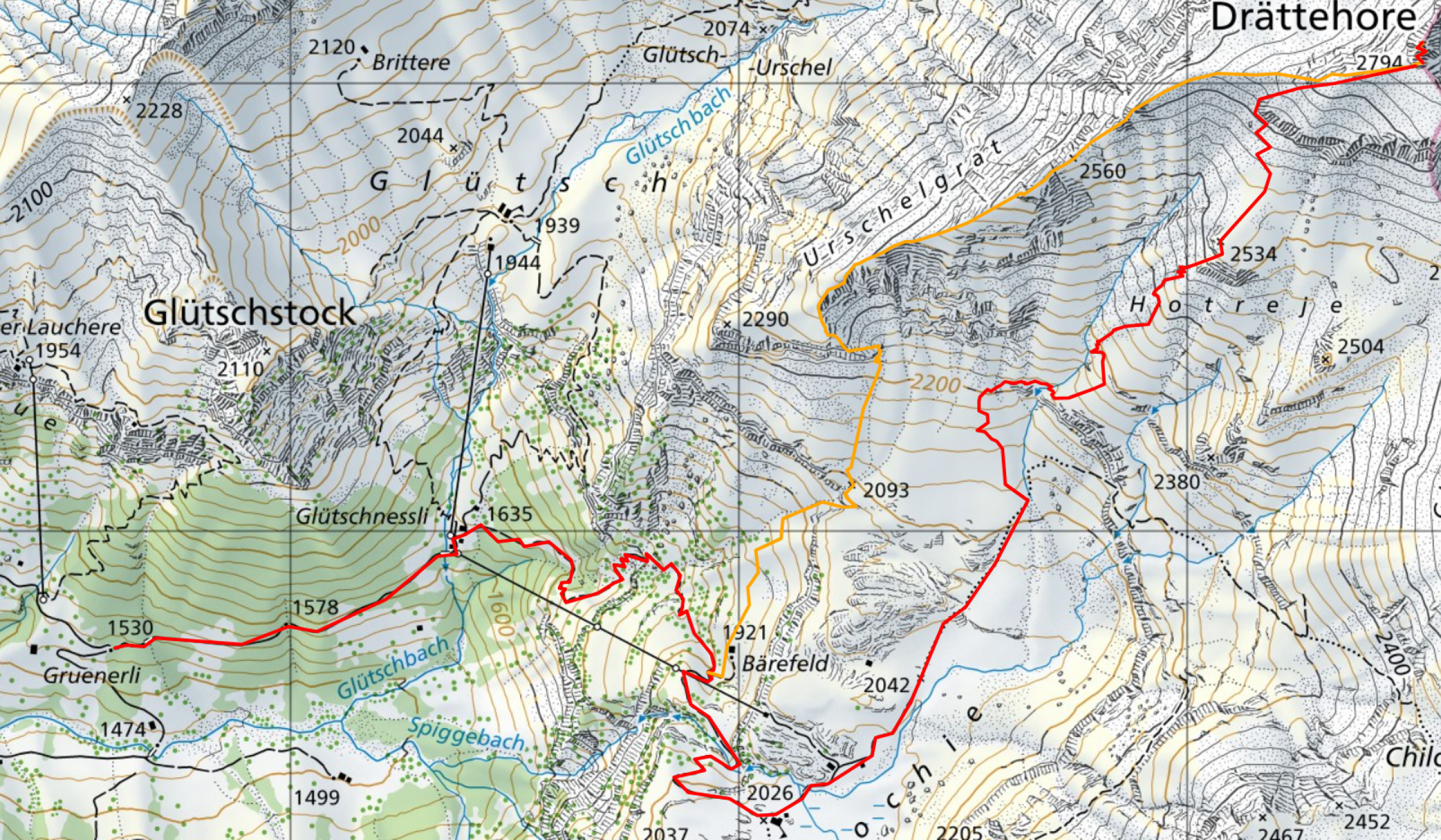 Drättehorn (2794m): via Hotreje Urschelgrat