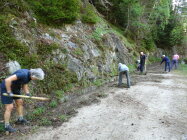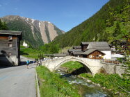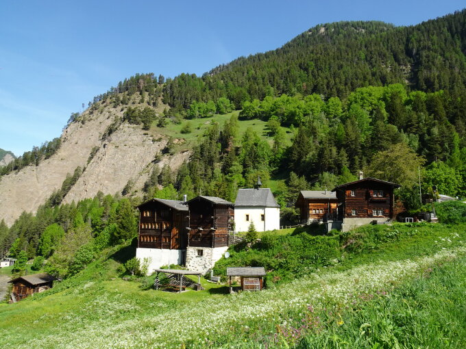 Römerweg - Binn 1400 m. - Twingischlucht - Grengiols 995 m. Mit dem Postauto nach Binn Dorf, über die antike Brücke die Binna überqueren, kurz der Strasse folgen Richtung Kirche. Dort wo die Strasse zur Kirche hinaufzieht, bei der Sitzbank nach rechts dem Wanderweg folgen (Wegweiser), durch den Wald nach Ze Binne. Hier nicht der Abzweigung Richtung Heiligkreuz folgen, sondern nach rechts zum Stübli beim Ausgleichsbecken hinunter. Nun folgt man die ganze Zeit der alten Fahrstrasse durch die Twingischlucht bis zum Tunnelausgang bei der Steimatte. Hier folgt man dem Strässchen, das nach links hinunter bis zur Römerbrücke hinunterführt. Nach der Brücke steigt die Strasse an bis zur Kapelle Blatt. Hier Brunnen und Tisch mit Sitzmöglichkeiten. Man folgt dem Strässchen, eigentlich dem alten Handelsweg nach Italien, vorbei an der Hockmatta und wird so an mehreren Chalets und Stafels vorbei geführt bis man zur Kapelle und den Häusern von Bäckerhischere und weiter nach Grengiols. Nach dem letzten Lawinengraben, könnte man dem unteren Wanderweg folgen, der im Wald über der Binna nach Bäckerhischere führt. Die Fahrstrasse ist weniger holprig dafür sonniger.