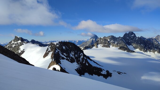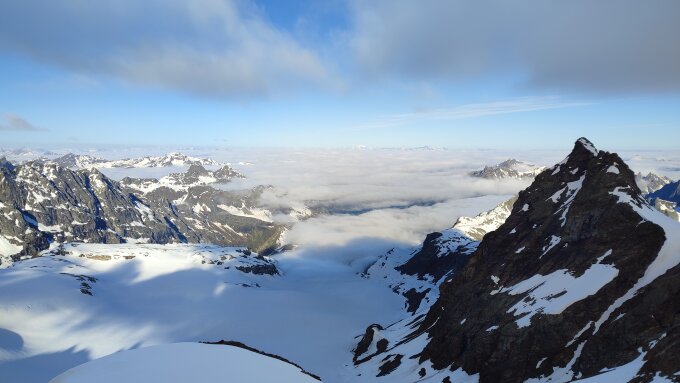 Genügend Schnee erst ab etwa 2350 m im Galtürtäli! Im oberen Bereich etwas Neuschnee, gut verfestigt und schön zum fahren. Wir sind um 03:30 Uhr in Klosters Monbiel gestartet. Schneedecke im oberen Teil gut gefroren.