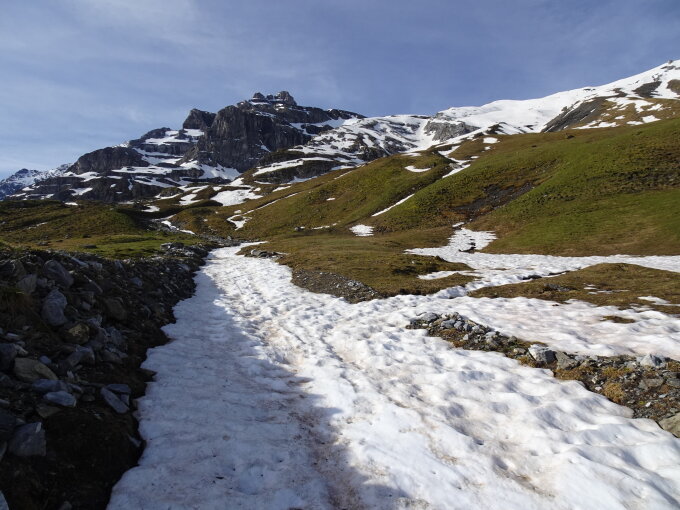 Ab 2030m im Bachgraben noch durchgehende Schneezungen gefunden bis Gipfel.