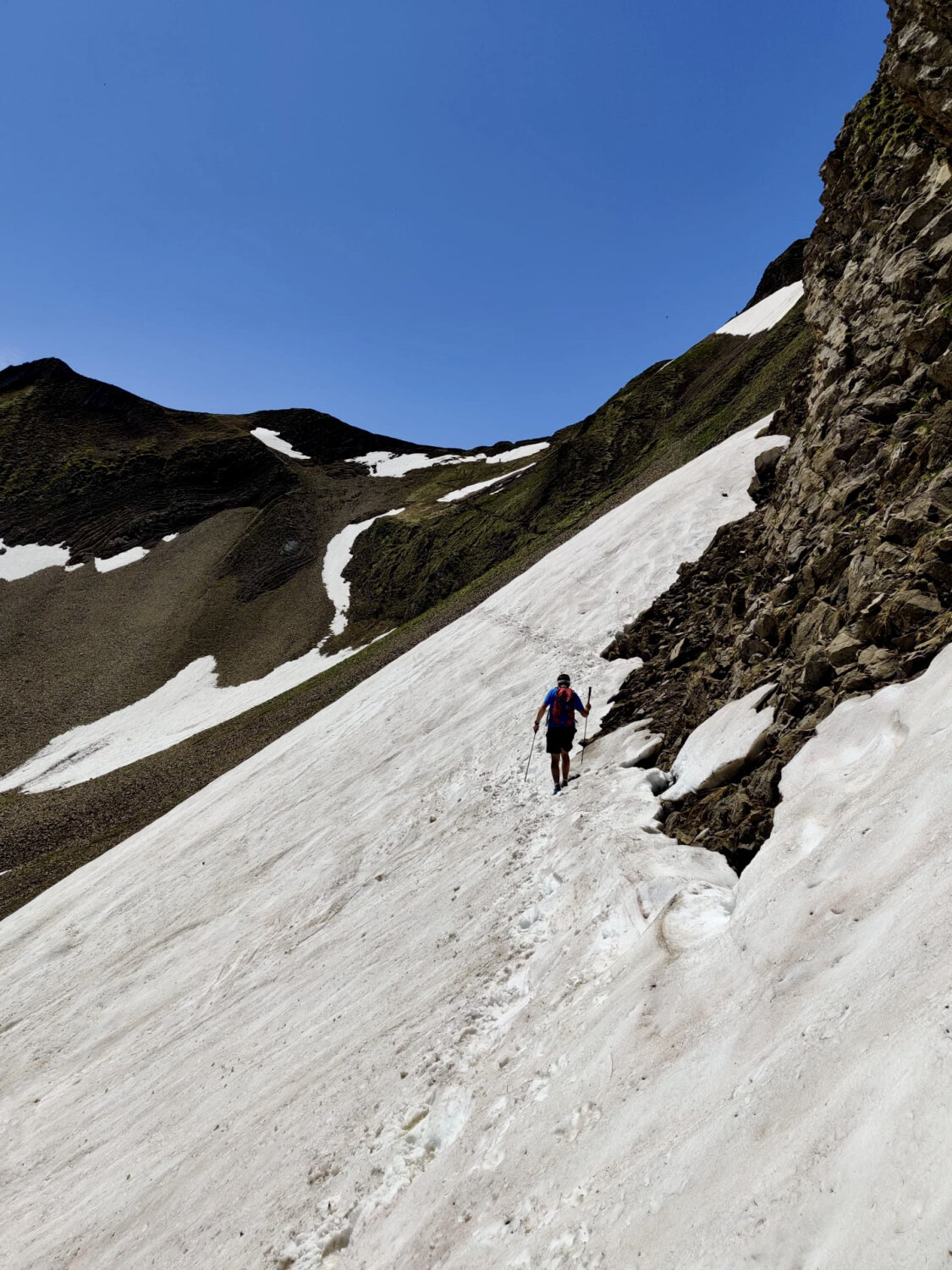 Es liegen noch einige Schneefelder auf der Route, sowohl auf der Nord- wie auch der Südseite. Sie sind jedoch mit etwas Vorsicht problemlos passierbar.