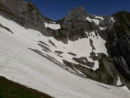 Abstieg problemlos machbar. Bin dann über den Nädliger weiter, wo es noch viel Schnee und steile Schneefelder gibt. Pickel war hier von Vorteil. Einige Wanderer drehten dann unter dem Jöchli um, da es auch dort noch viel Schnee hat. Mir kam der gerade recht, denn so konnte ich alles in den Schneefeldern abrutschen.