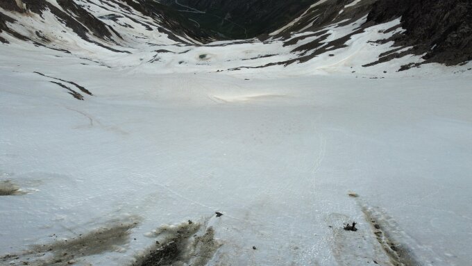 Oben noch schöner leichter Sulzschnee, unten Richtung Gletscher Ende zunehmender schwerer