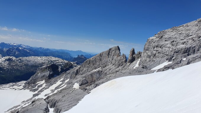 Tour ist sehr ausgesetzt und die Aussicht beeindruckend. Beim Zustieg auf dem Gletscher zum Grat um ca. 08.00 Uhr noch harter Schnee. Auf dem gesamten Westgrat befand sich kein Schnee mehr. Der Fels ist grösstenteils extrem scharf und griffig. Im Abstieg vom Ruchen sehr nasser Schnee, aber mit Steigeisen kein Problem. Es ist ein kurzes Felsband zu überqueren um auf den Gletscher zu kommen.