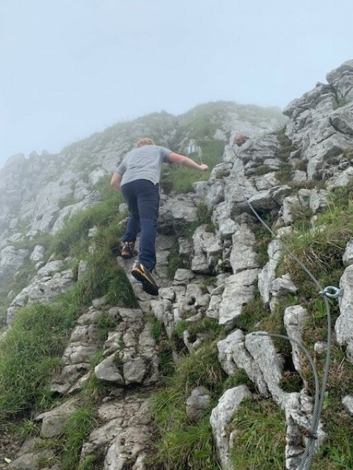 Wanderung mit stahlseilen usw ausgestattet, bei nasse Verhaeltnisse ziemlich heikel. Ausgesetzt. Wunderbare Aussicht & Alpine Umgebung. Ich wuerde eher T5 bewerten.