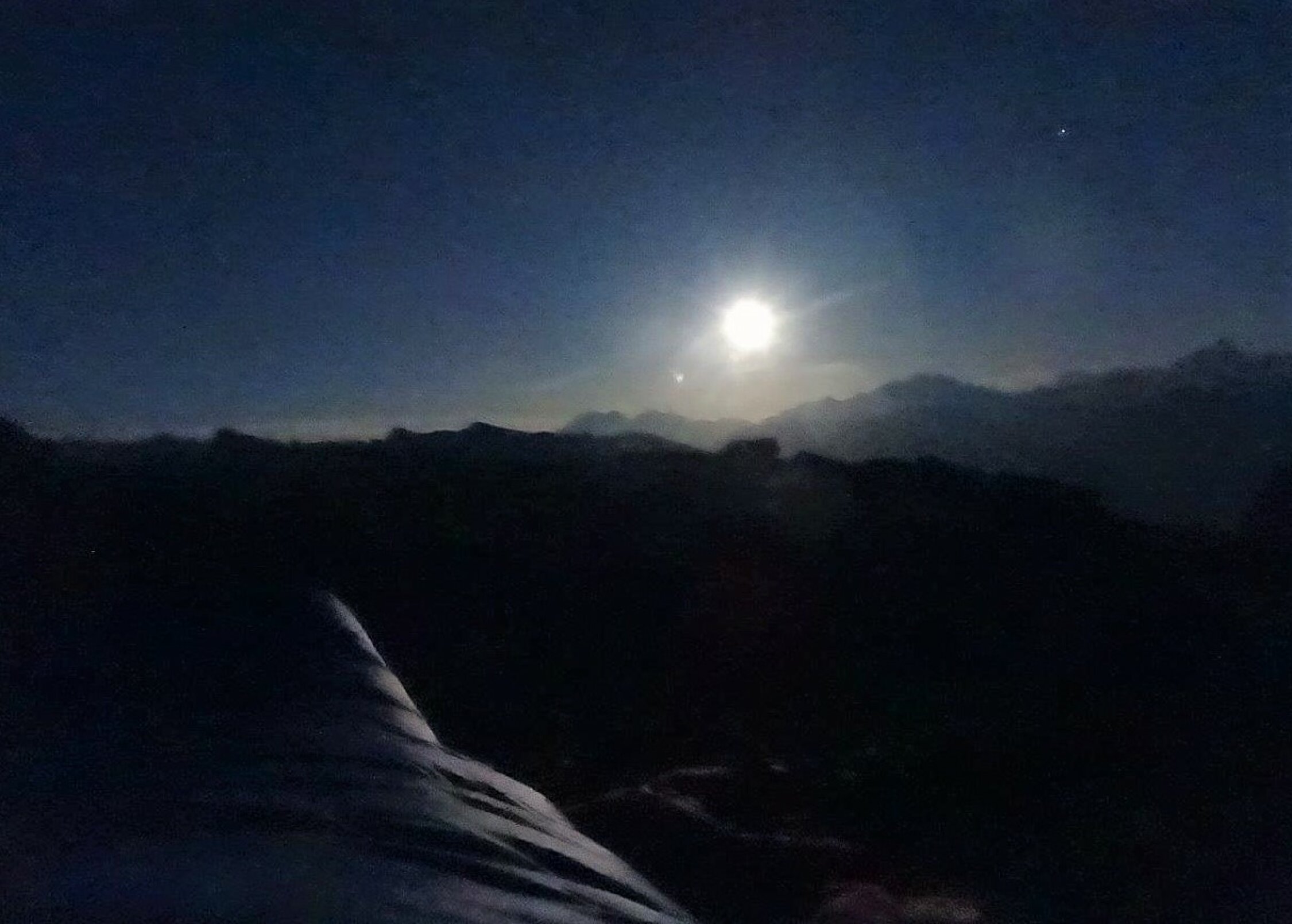 wieder einmal ein Erlebnis der besonderen Art - alleine unter dem Sternenhimmel mit einer speziellen Atmosphäre während dem Vollmond. Schauen und Staunen aus dem Schlafsack zu unserem Nachbarn.. Ebenso das unendliche Universum mit seiner Sternenpracht. Diese Tour konnte ich exakt 77 Tage nach meinem 77. Geburtstag unternehmen. Wird mir in nachhaltiger Erinnerung bleiben :-)