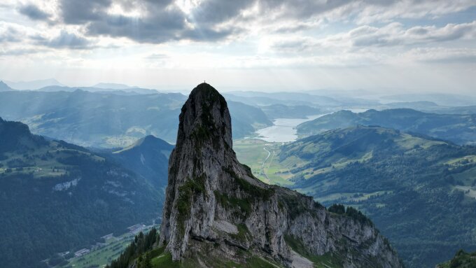 Diesen hatte ich schon lange auf meiner Liste aber bisher fehlte mir der Mut. Objektiv ist es eher eine einfache T6 Tour da überall sehr gute Griffe und Wegspuren vorhanden sind. Subjektiv machte mir aber die Ausgesetztheit etwas Mühe. Da man sich aber zwischen durch immer wieder in einfacherem Gelände befindet und der Grat relativ kurz ist ging das gut. Abstieg auf der selben Route.
