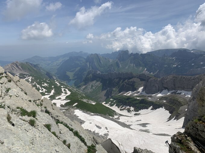 Vor Stüze 2 noch ein Schneefeld in der Mulde aber Gut zugehen . Himmelsleiter Top gesichert,