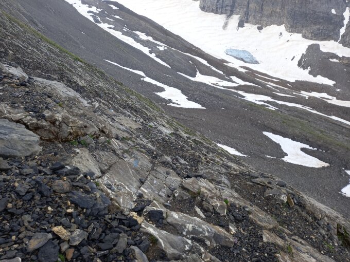 Aufstieg am Vortag von St. Jakob über Biwaldalp zum Gitschenhörelihüttli und Übernachtung. Start um 6 Uhr und auf der Möräne hoch zum Pkt. 2429 und weiter bis unter die "Südwand". Beim Einstieg noch Ketten, nachher keine Sicherungen mehr aber techn. unschwierig (runter fallen sollte man aber schon nicht). Nach Pkt. 2659 etwas feucht und eher rutschiges Material, daher mühsam zu gehen. Gipfel bei Ankunft um 7 Uhr voll in dem Wolken, null Sicht, sehr zugig und kühl, yours truly war froh um die mitgebrachte Isolationsjacke und die Handschuhe. Jä nu. Abstieg auf dem alternativen Weg über den Rotstocksattel. Nach Pkt. 2695 verläuft der Weg zurück zur Hütte in einer breiten Rinne, welche noch mit Schnee gefüllt ist, im Abstieg sehr kommod, weil gesurft werden kann, im Aufstieg wohl eher mühsam, da schon am Morgen weich.