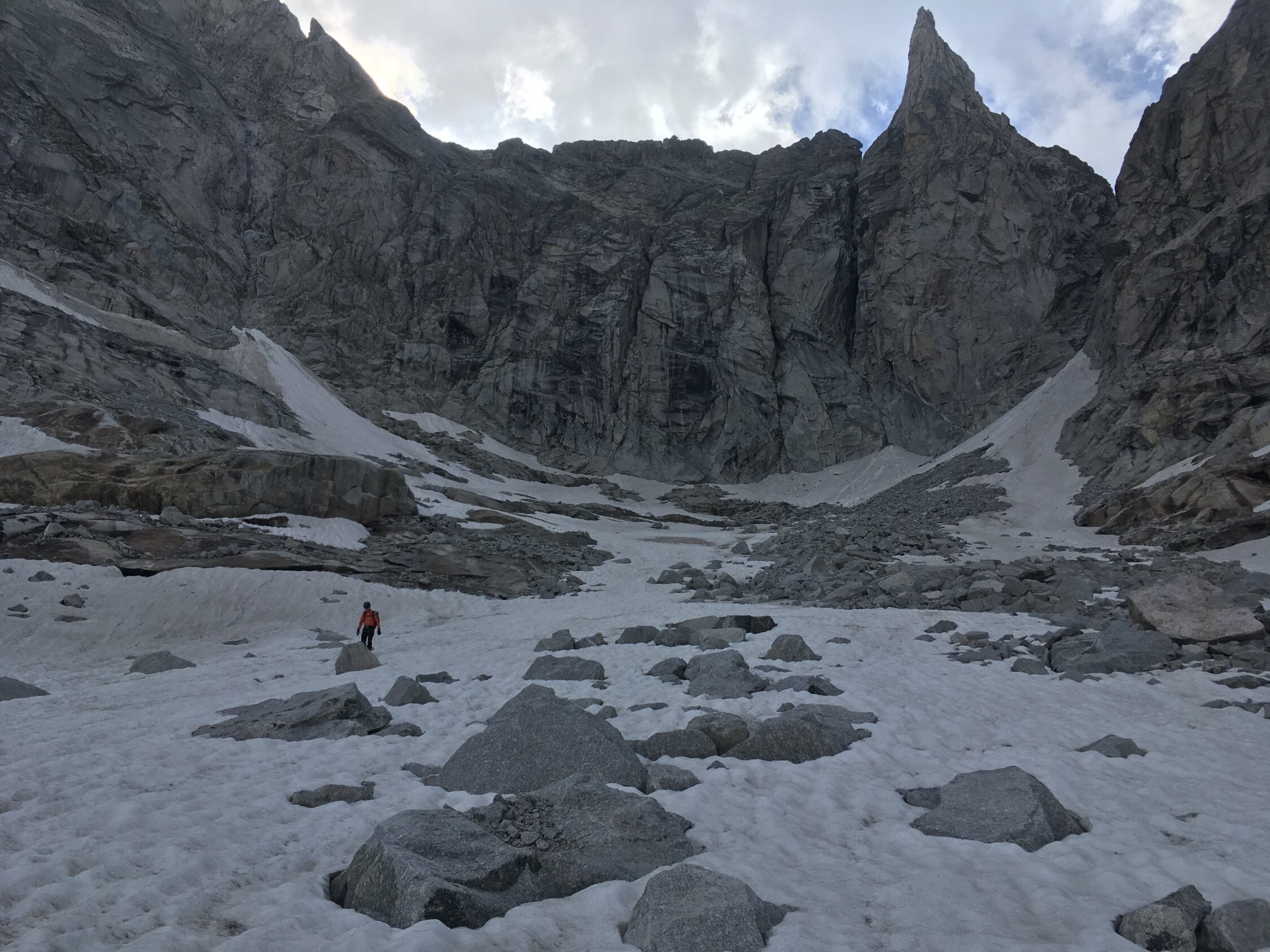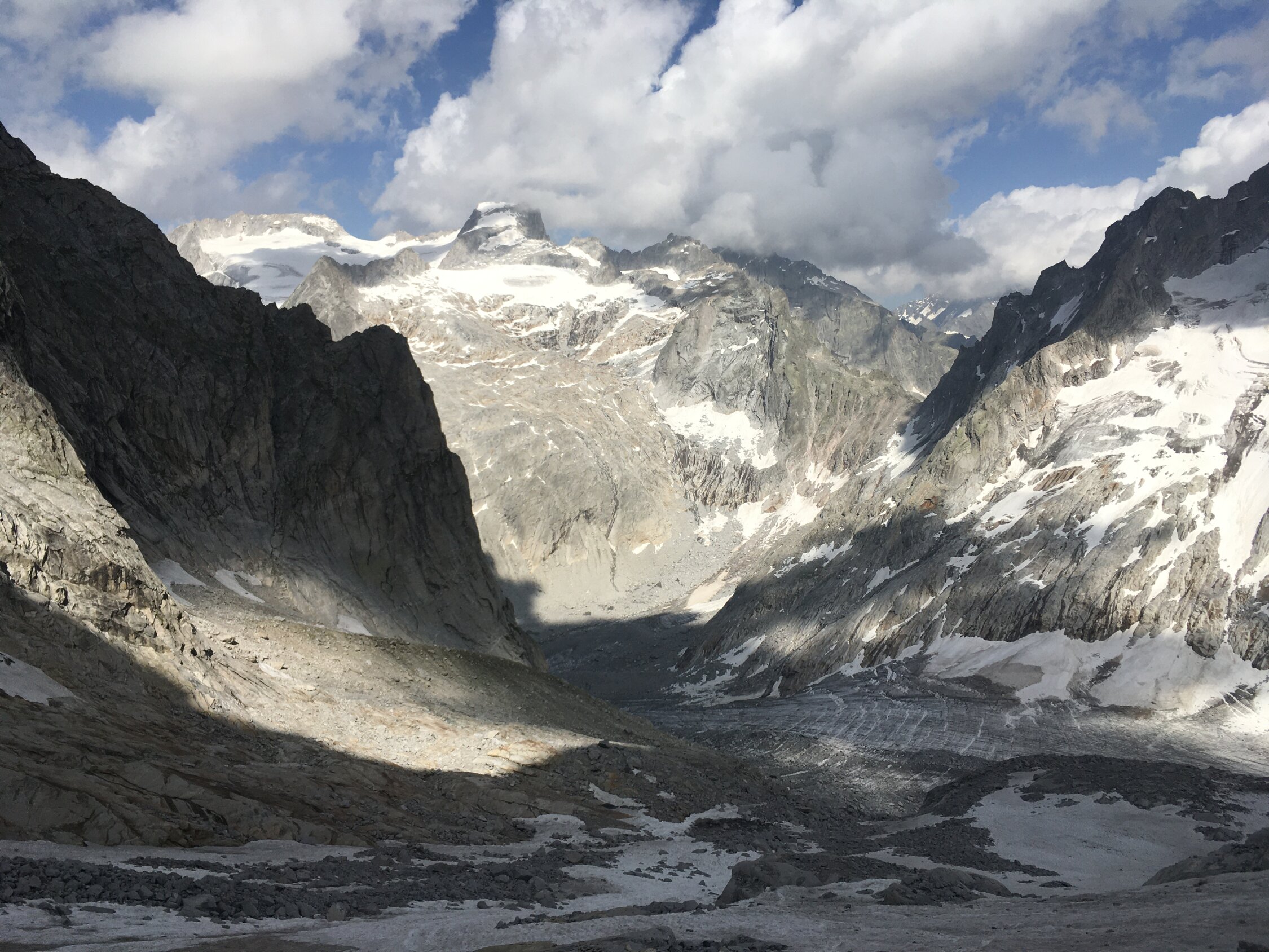 Unangenehmer zu- und Abstieg über den Gletscher durch viel loses Blockwerk