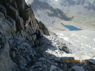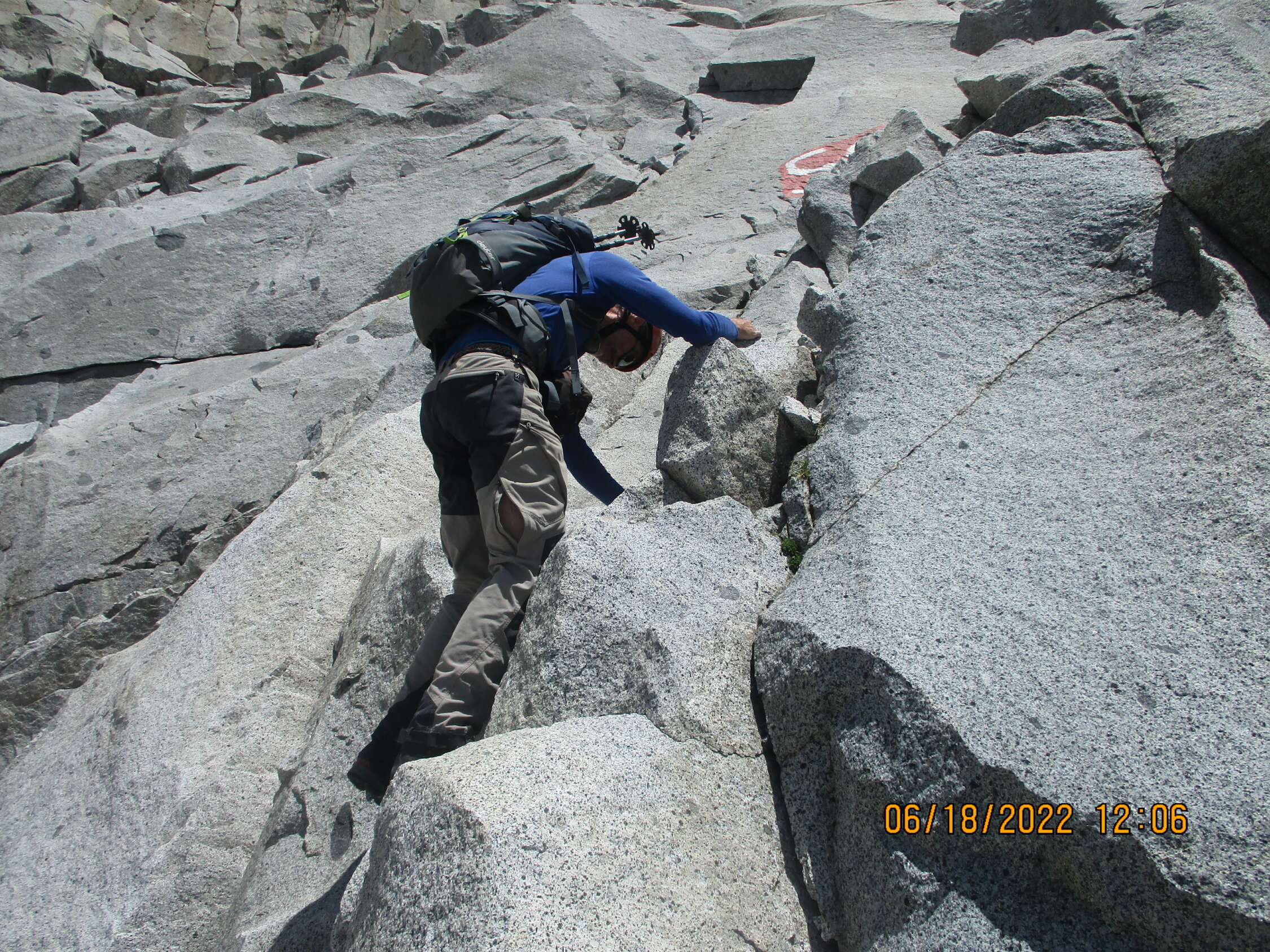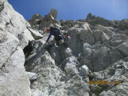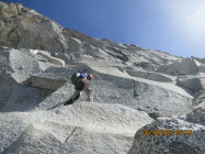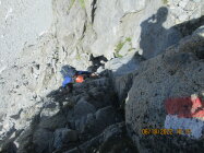 Wir hatten das Glück, Route und Gipfel bei bestem Wetter allein begehen zu können. Auf dem Rifugio Tonolini hatten außer uns nur noch vier weitere Personen übernachtet, die andere Ziele hatten. Samstag auf Sonntag schien die Hütte aber komplett belegt (Alpinkurs), und freie Parkplätze unten in Ponte Guat waren bereits rar. Am Sonntagmorgen fuhren zusätzlich noch viele Tagesbesucher Richtung Ponte Guat.
