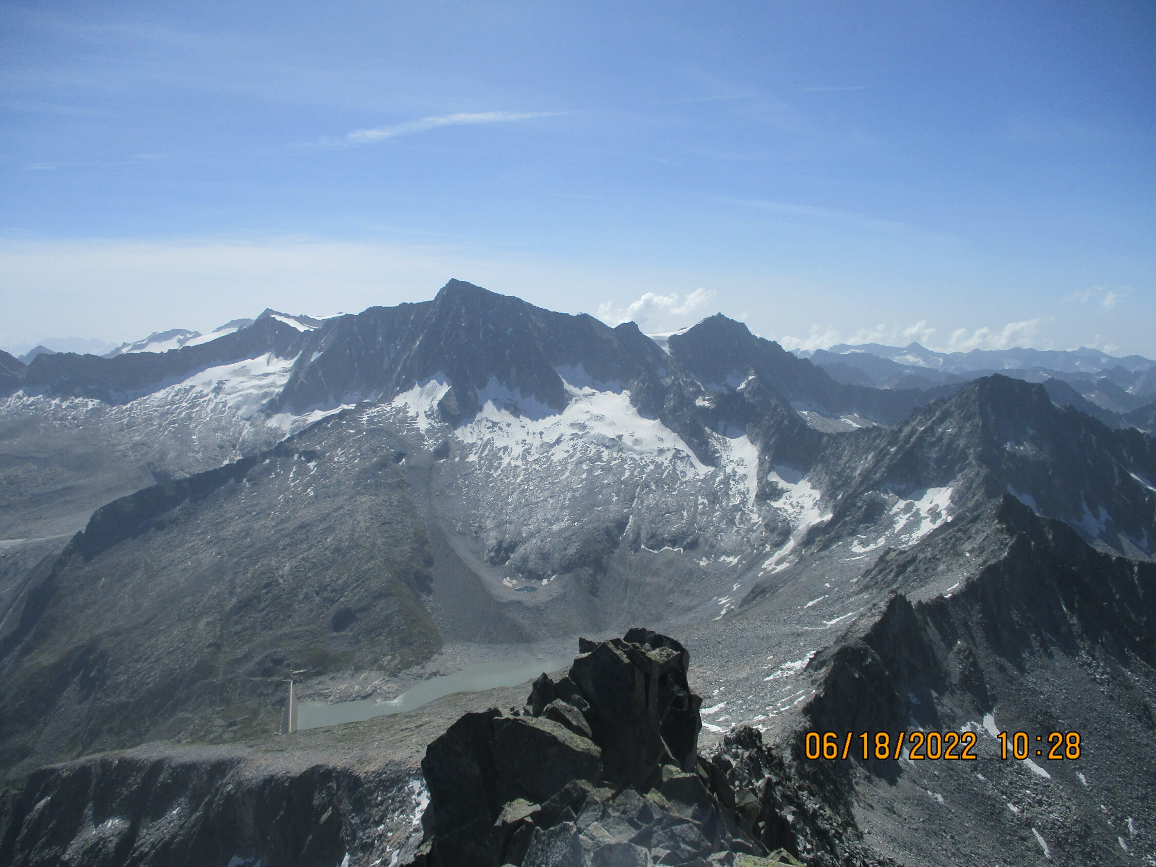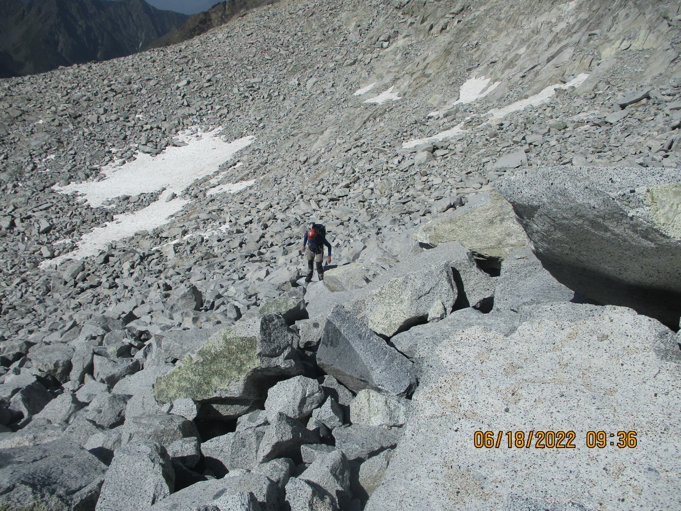 Die Tour kann derzeit ohne Steigeisen und Pickel gemacht werden. Feste Bergschuhe, Steinschlaghelm - das reicht bei den aktuell trockenen, schnee- und eisfreien Bedingungen. Von einem Gletscher konnten wir hier nichts mehr sehen, allenfalls als Toteis unterm Schutt.