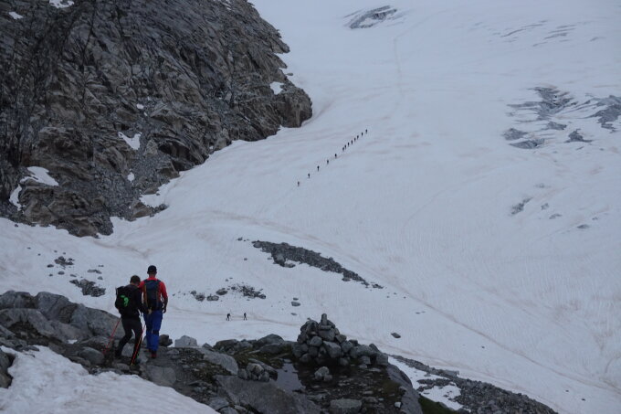Spalten sind teilweise zu erahnen, Brücken dürften wohl noch etwas halten. Etwas 20cm Sulz auf tragenden Untergrund, wird noch ein paar Stiefel brauchen bist da eine Autobahn hoch ist ;-)